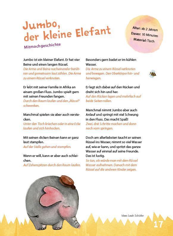 Die Tage in der Krippe sind voll mit Sprache - Lieder, Klanggeschichten, Fingerspiele, Reime und Gedichte gehören fest dazu! Die 55 Gute-Laune-Spiele haben brandneue Sprachspiele für Krippenkinder im Gepäck: Mit Jumbo, dem kleinen Elefanten, gehen die Kinder b...