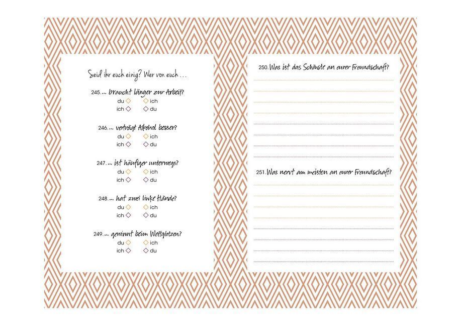 Deine beste Freundin ist einer der wichtigsten Menschen in deinem Leben. Ihr erzählt euch nicht nur alles und kennt all eure Geheimnisse, ihr ertragt auch eure Macken und teilt den gleichen Humor. Das gemeinsame Ausfüllen der 999 lustigen, ernsten, verrückten ...