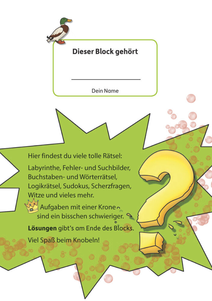 Rätselblock ab 8 Jahre, Band 1 Sie möchten Ihr Kind sinnvoll beschäftigen und gleichzeitig spielerisch fördern? 3 Gründe, warum mit diesem Block Spaß und Lernen Hand in Hand gehen: 1. KUNTERBUNTE WELTEN ENTDECKEN Auf jeder Seite warten spannende und abwechslun...