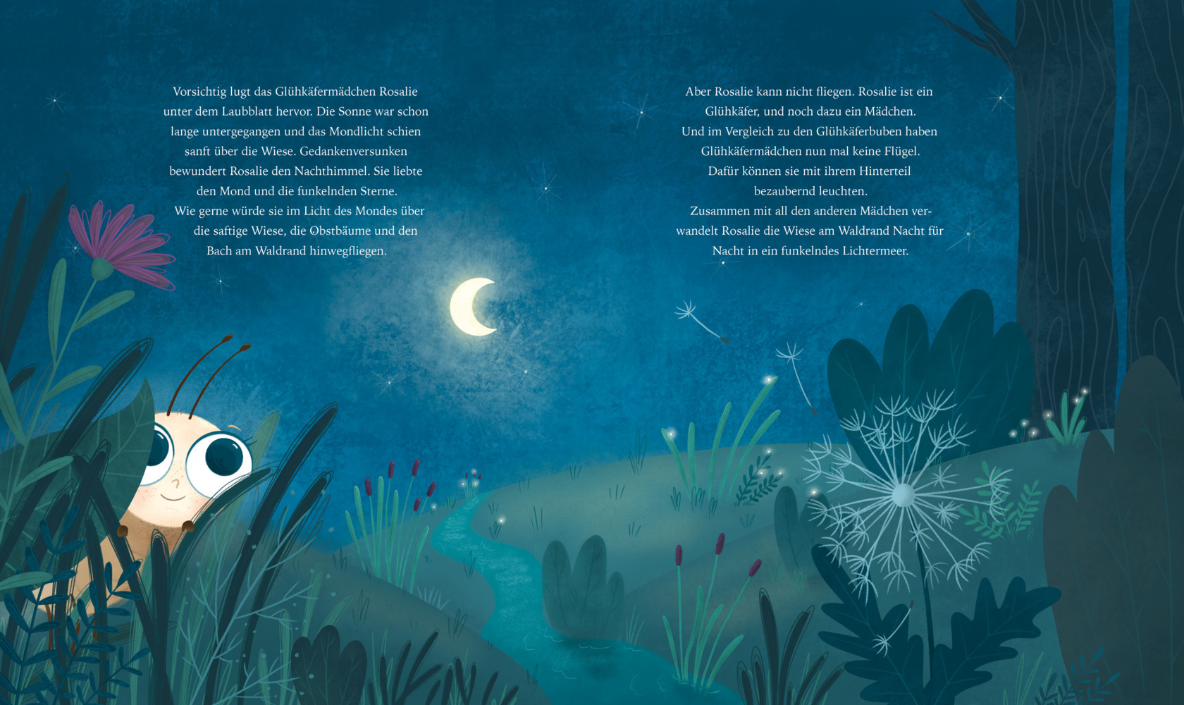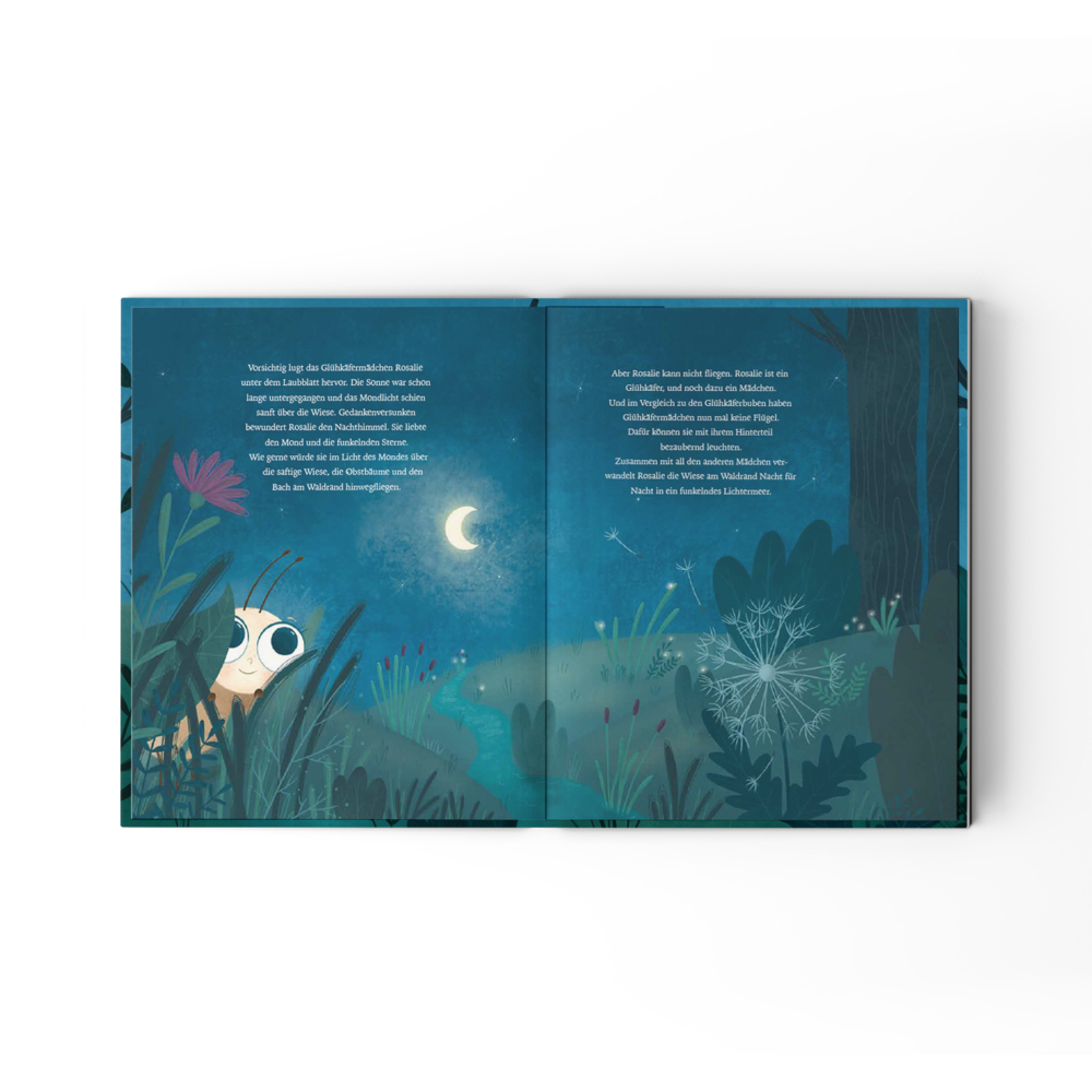 Zusammen mit all den anderen Glühkäfermädchen verzaubert Rosalie die Wiese jede Nacht in ein Lichtermeer. Doch Rosalie will lieber fliegen, so wie die Glühkäferjungen. Kann ihr Traum in Erfüllung gehen? Der fröhliche Regenwurm Huberta macht Rosalie Mut - für i...