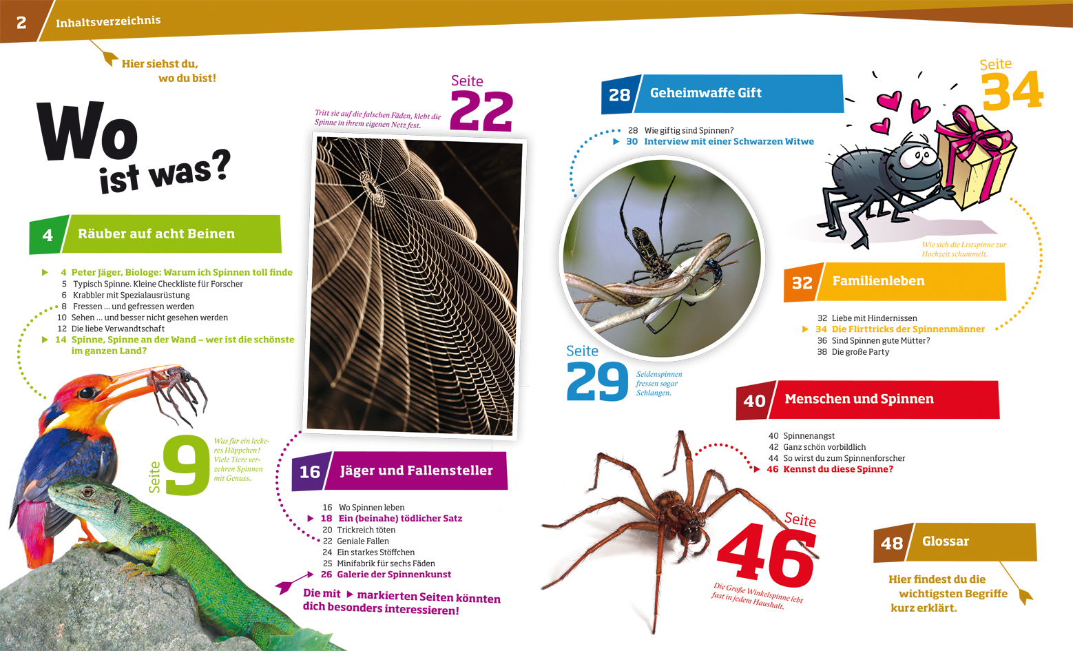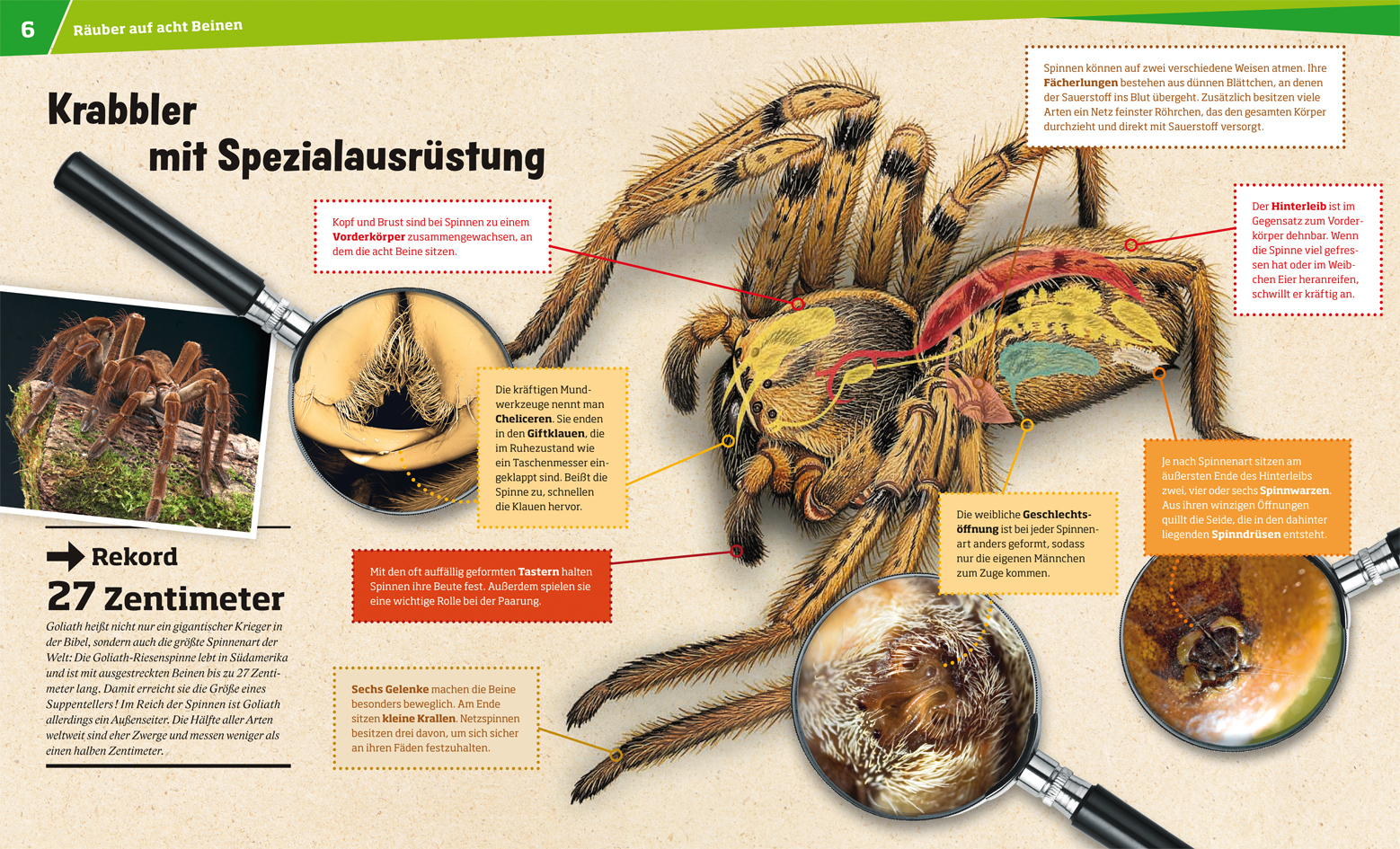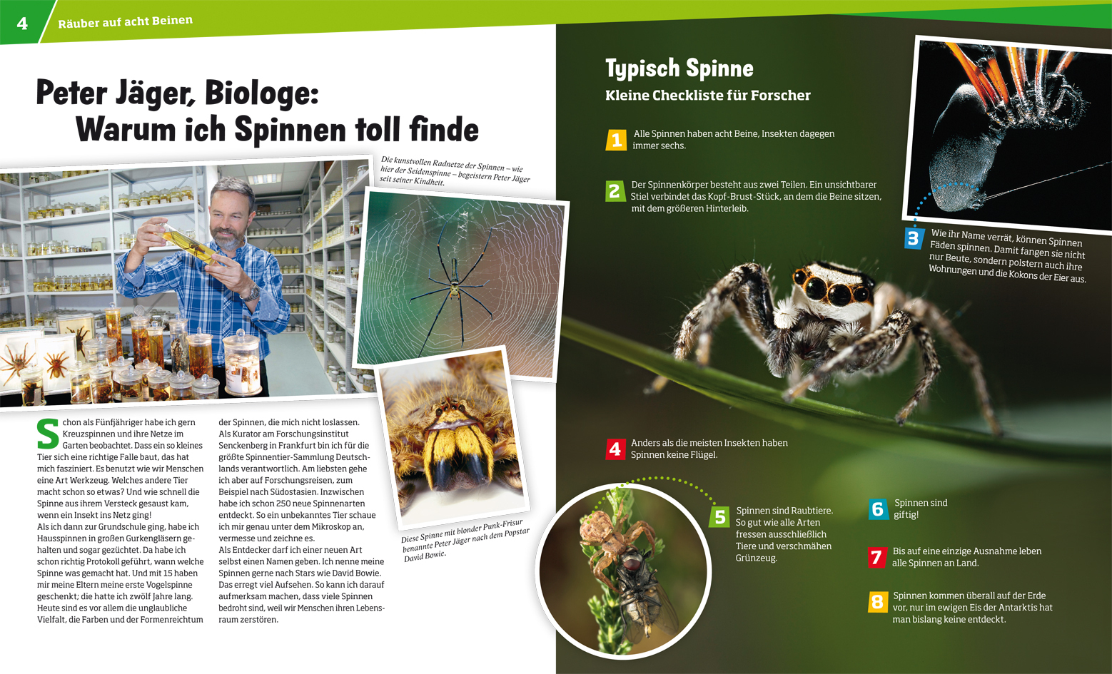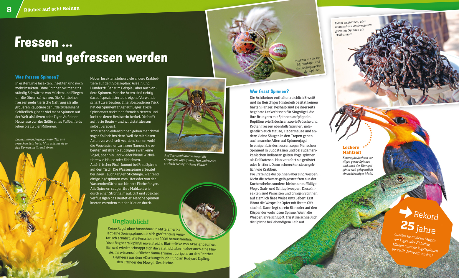 Spinnen sind Überlebenskünstler - älter als die Dinosaurier! Man findet sie in heißen Wüsten und auf Berggipfeln, in staubigen Zimmerecken, in absolut finsteren Höhlen und natürlich im Regenwald. An alle Lebensräume haben sie sich perfekt angepasst. WAS IST WA...