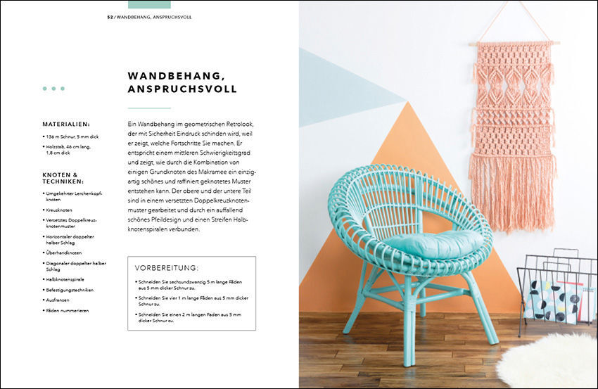 Makramee is back Wer sein Zuhause in ein Boho-Paradies verwandeln möchte, dem liefert "Makramee" inspirierende Ideen: Vom Türbogen über Blumenampeln, Tischdecken, Wandbehänge bis hin zu Schmuck oder einer Clutch bietet dieser Ratgeber 24 wunderschöne...