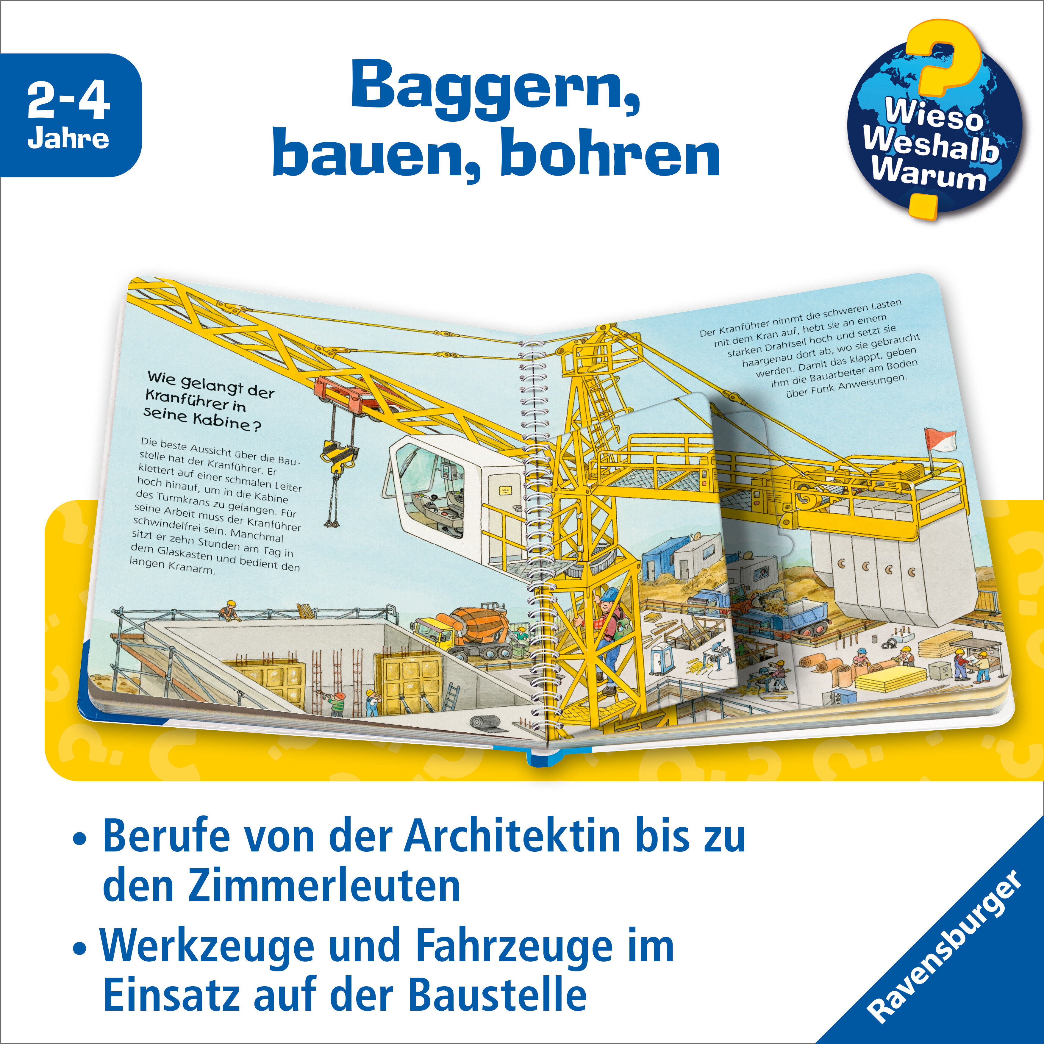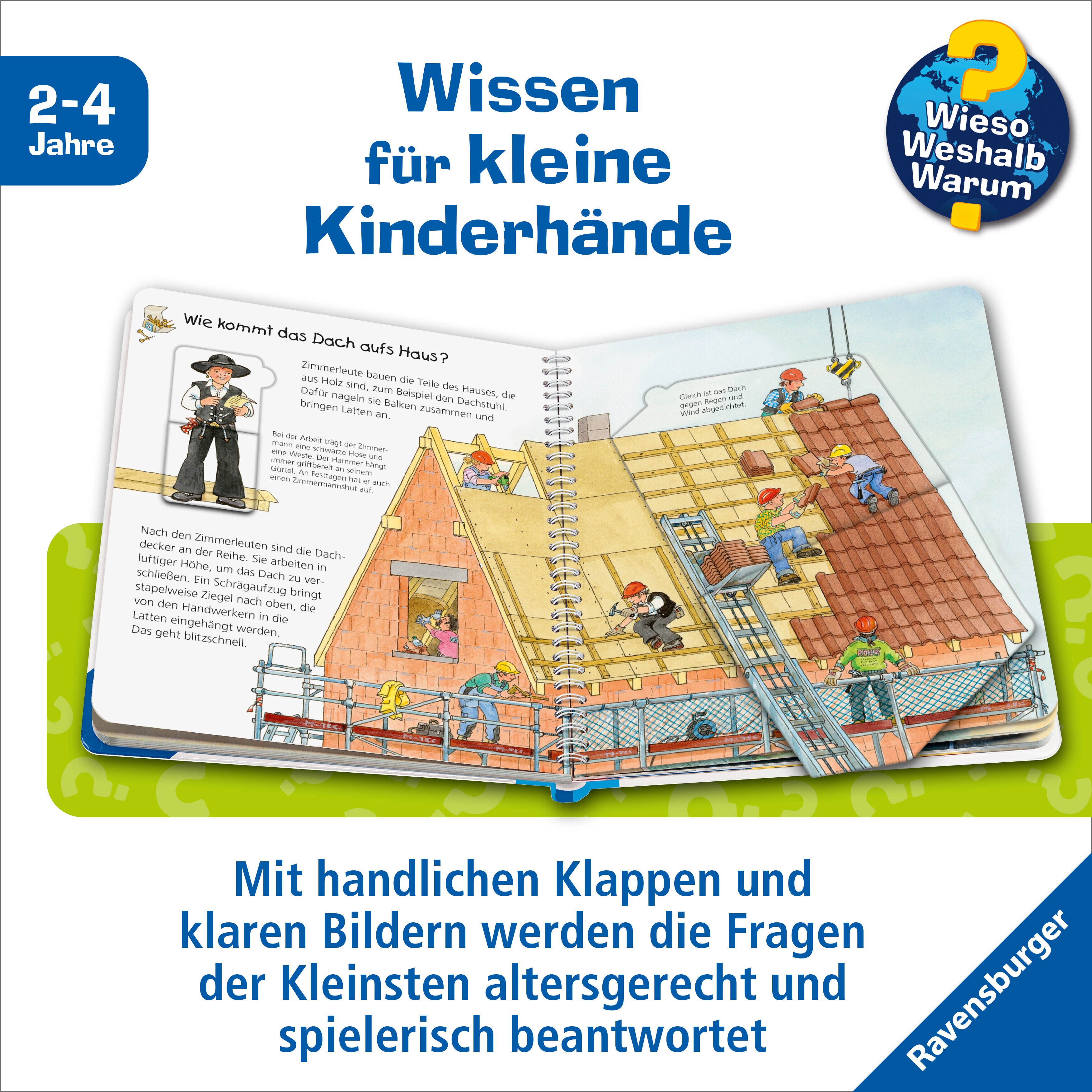Ravensburger 32640 Wieso? Weshalb? Warum? junior, Band 55: Wer arbeitet auf der Baustelle? WWW-junior (ab 01/06) Hier gibt es allerlei fleißige Handwerker zu sehen: Baggerfahrer, Maurer, Zimmerleute, Dachdecker, Elektriker, Gipser, Maler, Fliesenleger und Heiz...