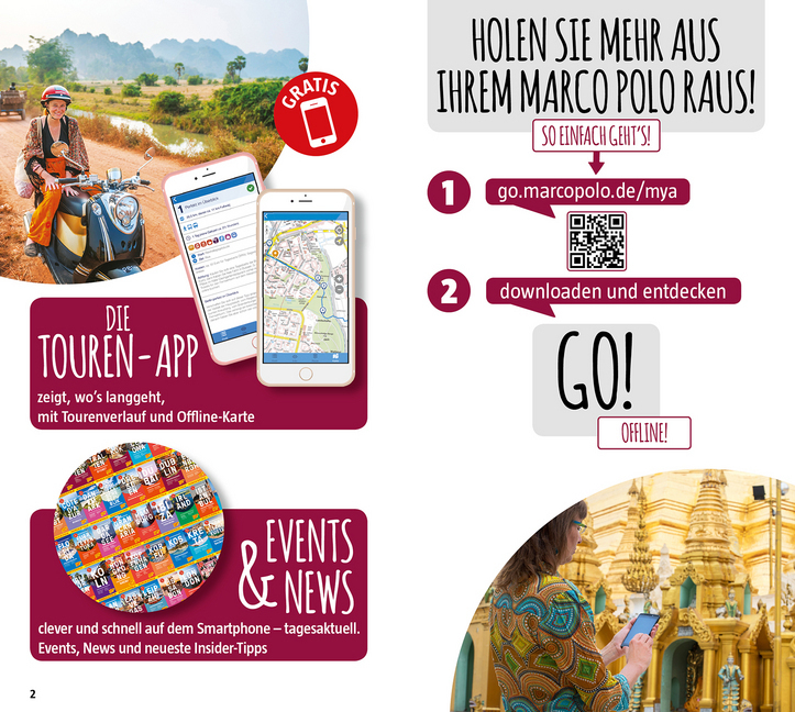 Kompakte Informationen, Insider-Tipps, Erlebnistouren und digitale Extras: Entdecken Sie mit MARCO POLO das Goldene Land von der pulsierenden Metropole Yangon bis zu den ursprünglichen Dörfern am Inle-See - mit dem MARCO POLO Reiseführer kommen Sie sofort in ...
