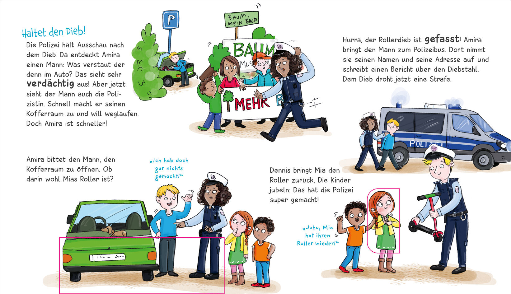 Oh Schreck! Mias Roller wird vor der Eisdiele geklaut. Die Polizei ist zufällig in der Nähe und kann den Dieb schnell schnappen. Doch Diebe zu finden ist nur eine der vielen Aufgaben der Polizei. Mia und ihr Freund Hakim sind nun neugierig und wollen alles übe...