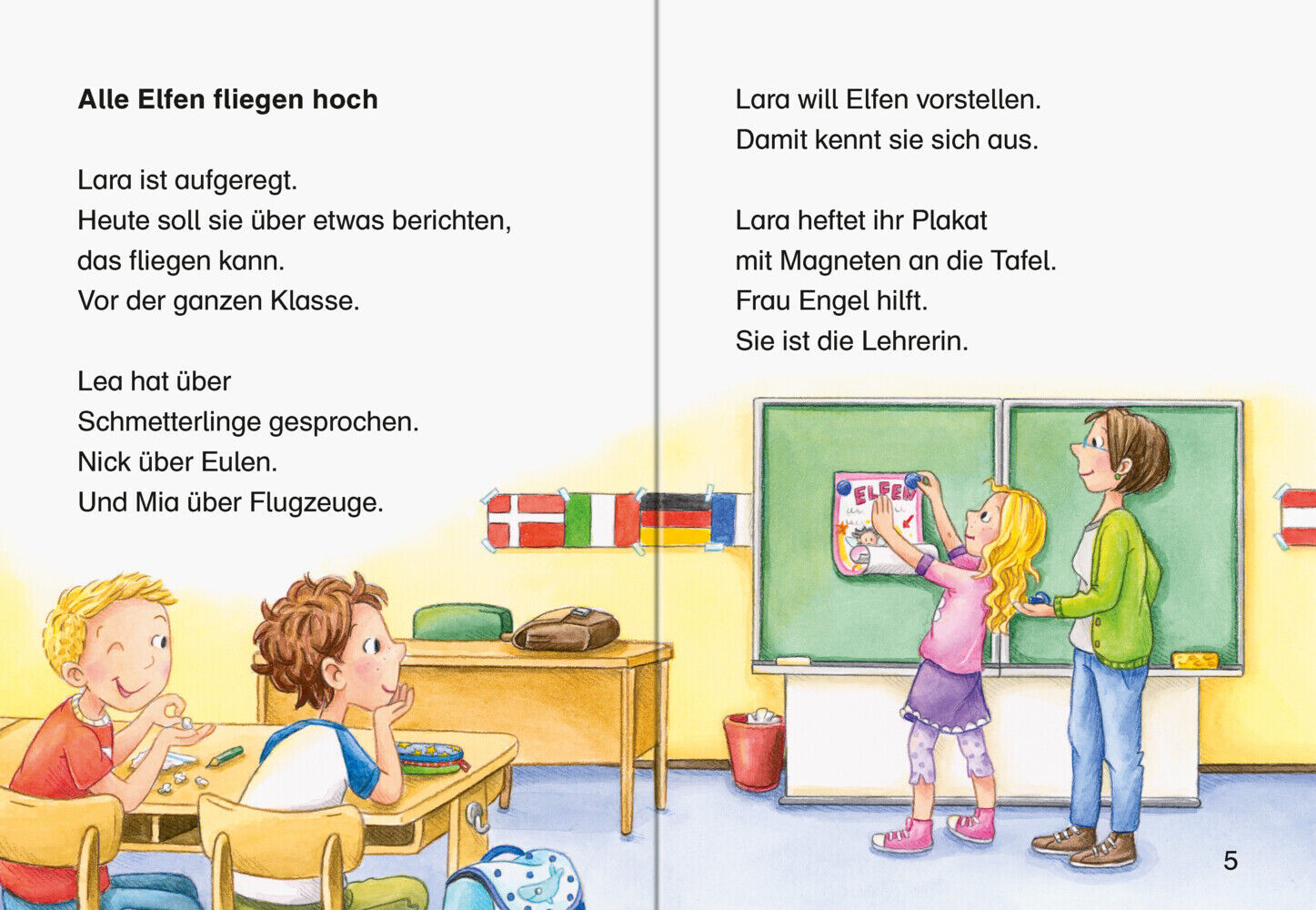 Lara möchte im Unterricht zum Thema "Fliegen" Elfen vorstellen und bringt Fritzi mit in die Schule. Doch als sie ihren Schulranzen öffnet, gibt es von der Elfe keine Spur. Die anderen Kinder lachen, denn sie glauben nicht an Elfen - bis auf Ben. Aber...