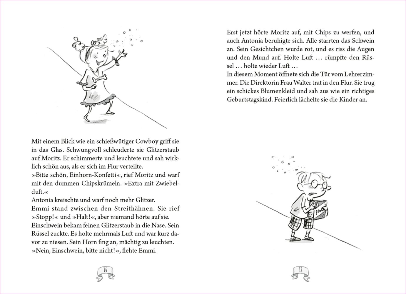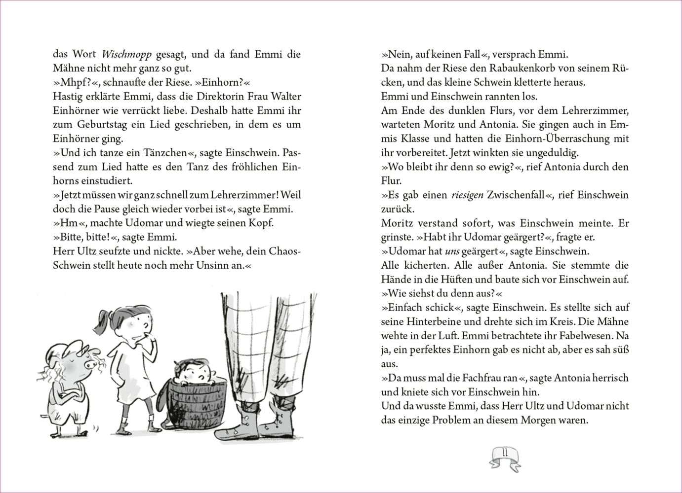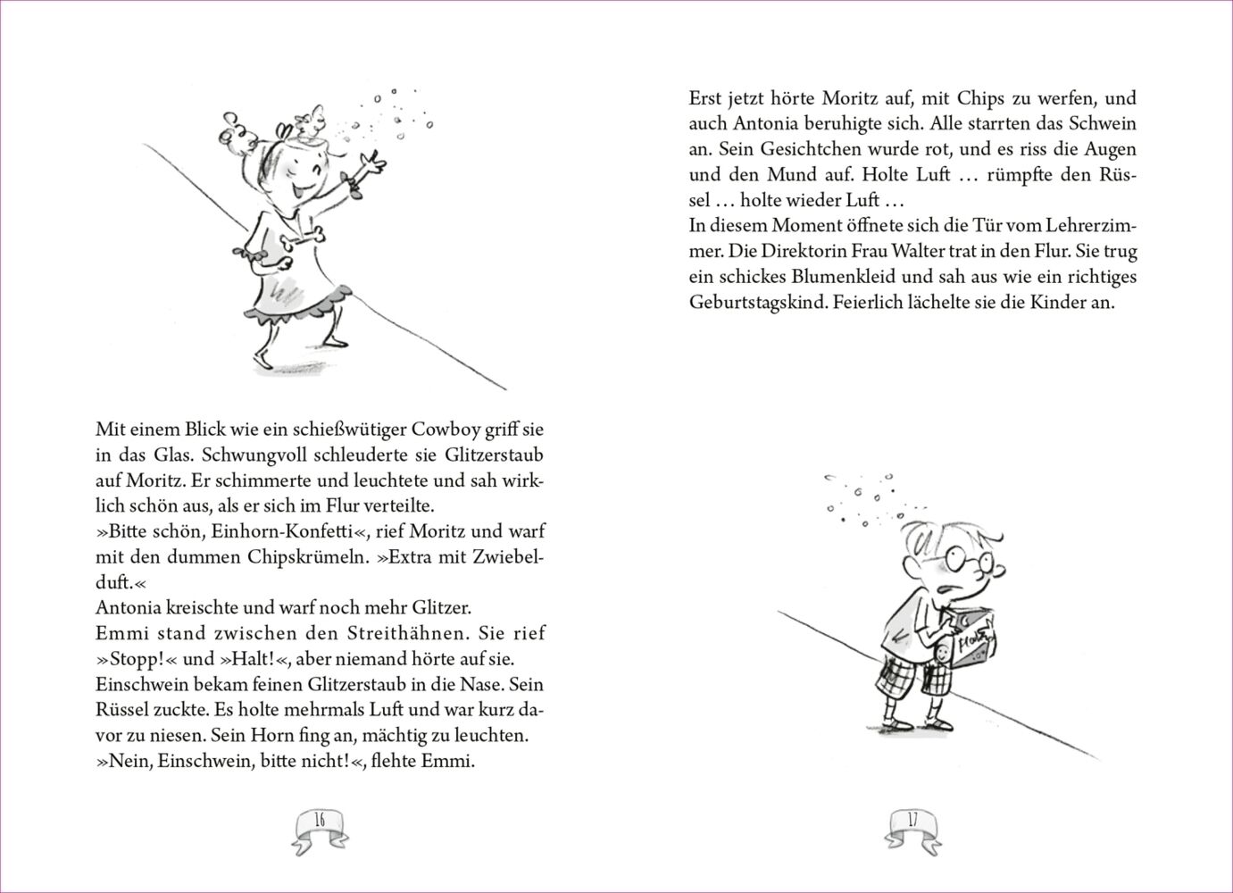 Einschwein benimmt sich mal wieder vollkommen unmagisch. Deshalb findet Emmi, dass es Unterricht von einem richtigen Einhorn braucht, um zu lernen, wie man anständig mit Horn zaubert. Aber da ahnen die beiden noch nicht, wie anstrengend so ein Promi-Leben als Einhorn ist, denn das beliebte Fabelwesen kann sich vor Fans kaum retten. Auch seinem Besitzer Henry ist der Trubel gründlich zu viel. Schließlich kommen alle vier in ernste Schwierigkeiten, als eine Brausefirma dem Einhorn nachstellt. Da gibt es nur noch eins: Das Einhorn braucht die Hilfe vom kleinen Einschwein.