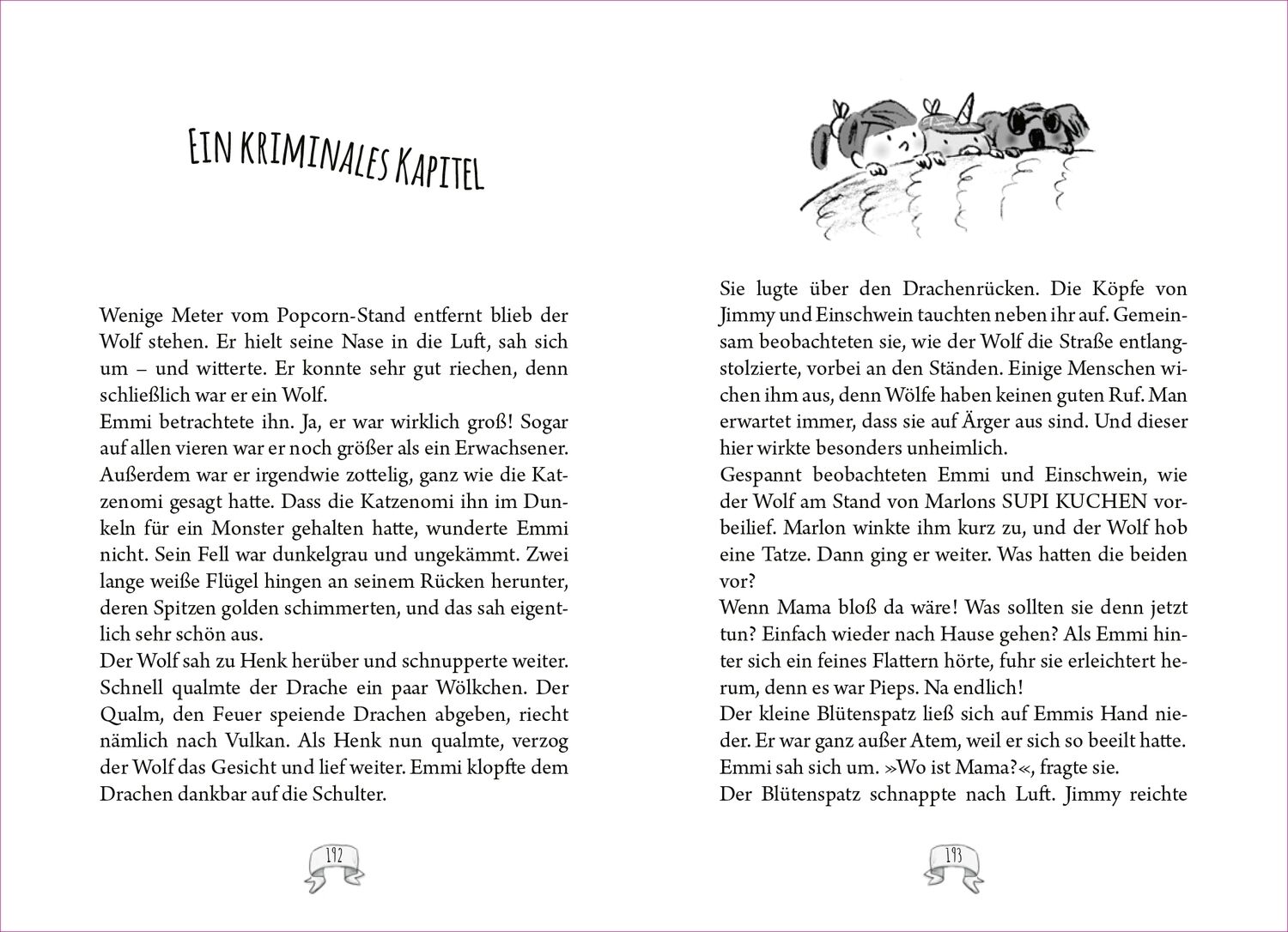 In Wichtelstadt treibt ein Dieb sein Unwesen. Er klaut die teuren Straßenlaternen, dank derer die fliegenden Fabelwesen nachts etwas sehen können. Papas Drache hat sogar einen Unfall in der plötzlichen Dunkelheit. Mama Brix soll den Fall lösen, schließlich ist sie Polizistin. Allerdings futtert Einschwein den einzigen Beweis auf: Ein Küchlein! Emmi ist stinksauer. Aber vielleicht können die beiden Mama doch noch helfen, den Dieb zu finden.