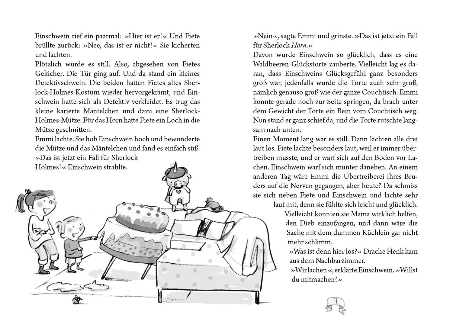 In "Emmi & Einschwein 5. Ein Fall für Sherlock Horn!" gerät Wichtelstadt in Aufruhr, als ein mysteriöser Dieb die magischen Straßenlaternen stiehlt, die für die Sicherheit der fliegenden Fabelwesen unerlässlich sind. Emmis Mutter, die Polizistin...In "Emmi & Einschwein 5. Ein Fall für Sherlock Horn!" gerät Wichtelstadt in Aufruhr, als ein mysteriöser Dieb die magischen Straßenlaternen stiehlt, die für die Sicherheit der fliegenden Fabelwesen unerlässlich sind. Emmis Mutter, die Polizistin der Stadt, nimmt sich des Falles an, doch die Ermittlungen nehmen eine unerwartete Wendung, als Einschwein, immer für eine Überraschung gut, den einzigen Beweis - ein Küchlein - aufisst. Trotz anfänglicher Frustration beschließen Emmi und ihr unkonventionelles Fabeltier, sich auf ihre eigene detektivische Reise zu begeben, um den Lichterdieb zu überführen. Mit Herz, Humor und einem untrüglichen Gespür für Gerechtigkeit stürzen sich die beiden in ein Abenteuer, das die dunklen Ecken von Wichtelstadt erhellt.