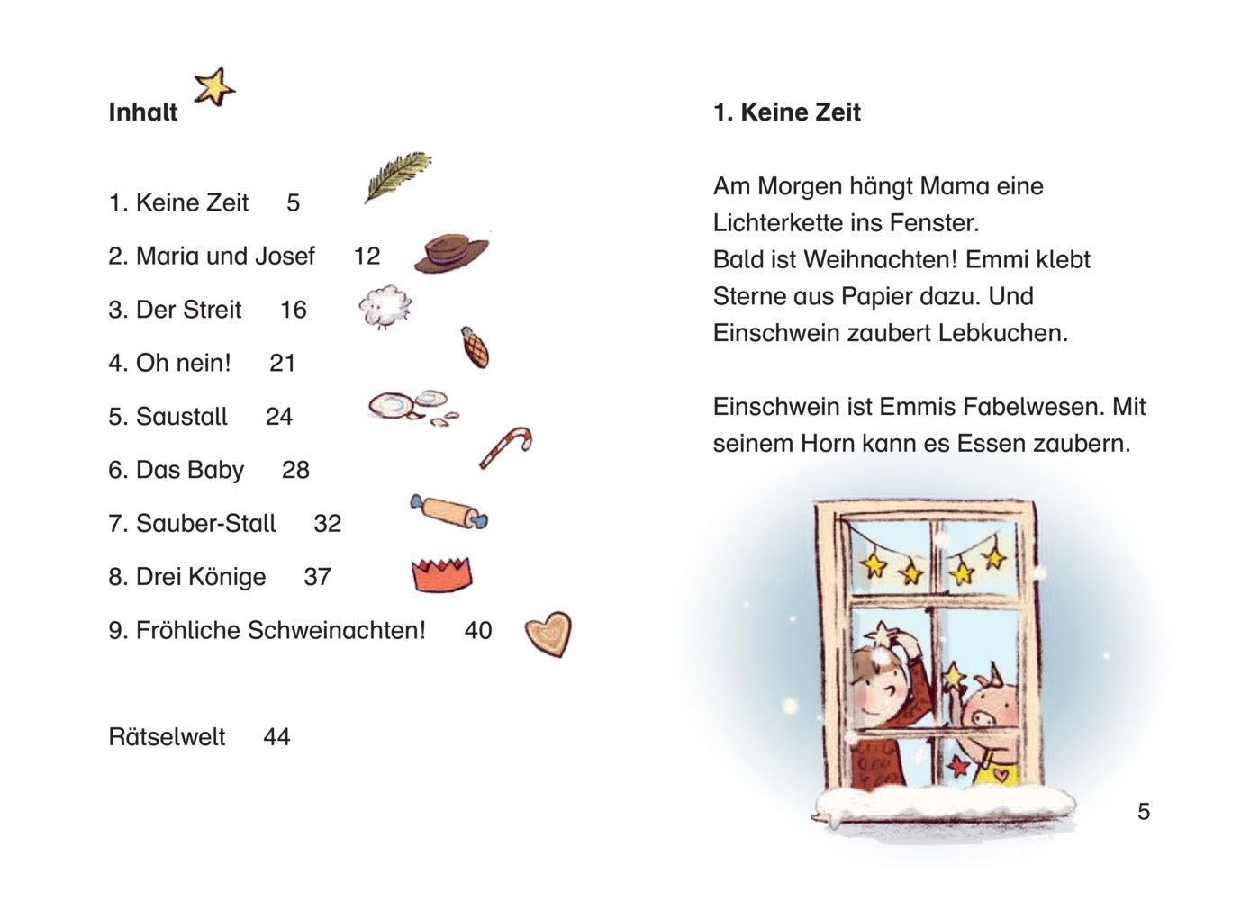 Bei Emmi und Einschwein weihnachtet es sehr. Und Einschwein hat einen ganz besonderen Wunsch: Es möchte, dass die Familie gemeinsam ein Krippenspiel aufführt. Aber das ist gar nicht so einfach. Da es an anderen Schauspielern fehlt, müssen die schrulligen Fabel...
