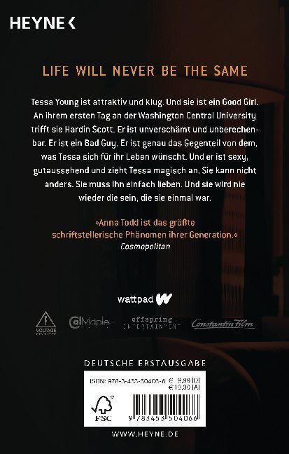 Der Kinoerfolg aus dem Jahr 2019! Tessa Young ist attraktiv und klug. Und sie ist ein Good Girl. An ihrem ersten Tag an der Washington Central University trifft sie Hardin Scott. Er ist unverschämt und unberechenbar. Er ist ein Bad Guy. Er ist genau das Gegent...