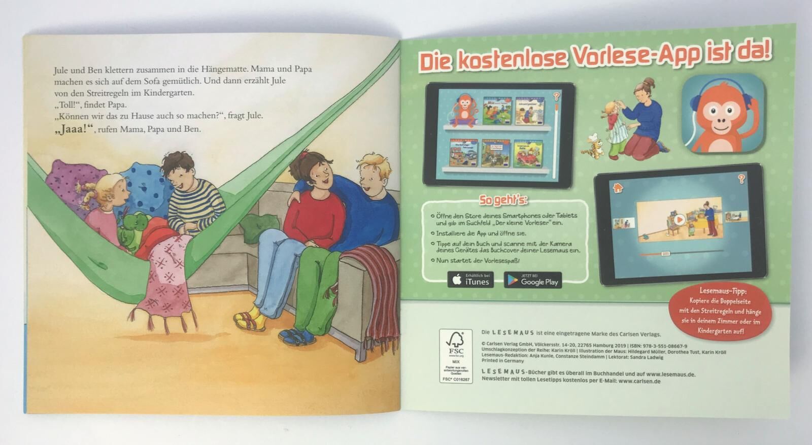 Wie reagiert man bei Streit? Eigentlich ist Jule nicht auf Streit aus, doch beim Frühstück ist das Knuspermüsli alle, dann liegt Ben in der Hängematte und im Kindergarten darf Jule nicht die Mama sein. Sie fühlt sich ungerecht behandelt und es kommt zum Strei...