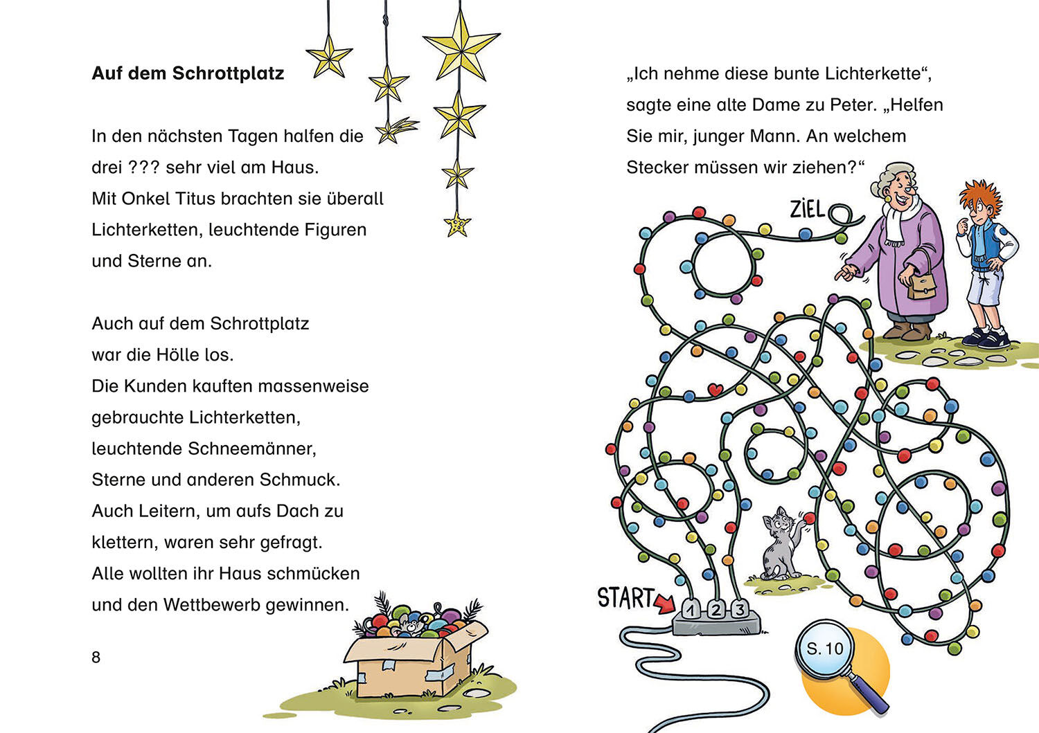 Welches Haus leuchtet am schönsten? Die drei ??? nehmen an einem Weihnachts-Wettbewerb teil. Doch mit den Lichterketten stimmt etwas nicht. Im Ratekrimi ab der zweiten Klasse nehmen Erstleserinnen und Erstleser zusammen mit Justus, Peter und Bob die Ermittlung...