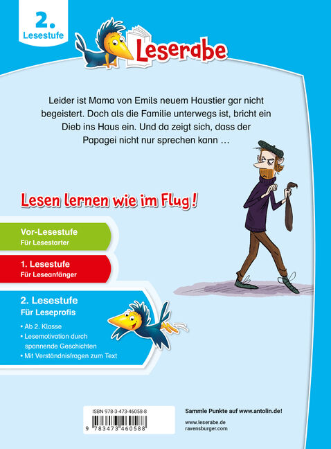 Lesen lernen wie im Flug! Als Emil ein Papagei zufliegt, ist die Aufregung groß. Der Vogel kann sogar sprechen. Aber Mama darf von Emils neuem Haustier nichts wissen. Das geht nicht lange gut und dann überschlagen sich die Ereignisse. Ein Einbrecher taucht auf...