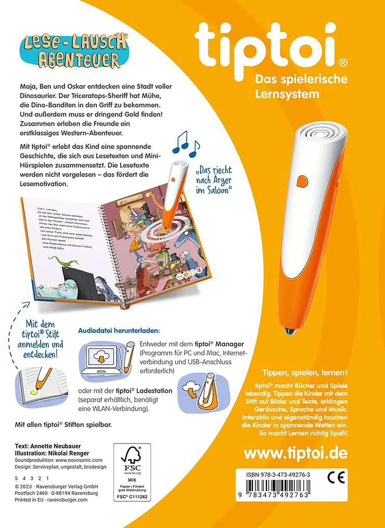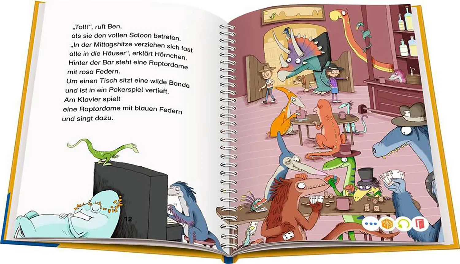 Lies selbst ein Stück und hör ein Hörspiel! Maja und Ben entdecken eine Western-Stadt voller Dinosaurier: Der Triceratops-Sheriff hat Mühe, die Dino-Banditen in den Griff zu bekommen. Und außerdem muss er dringend Gold finden! Können die Geschwister ihm helfen...