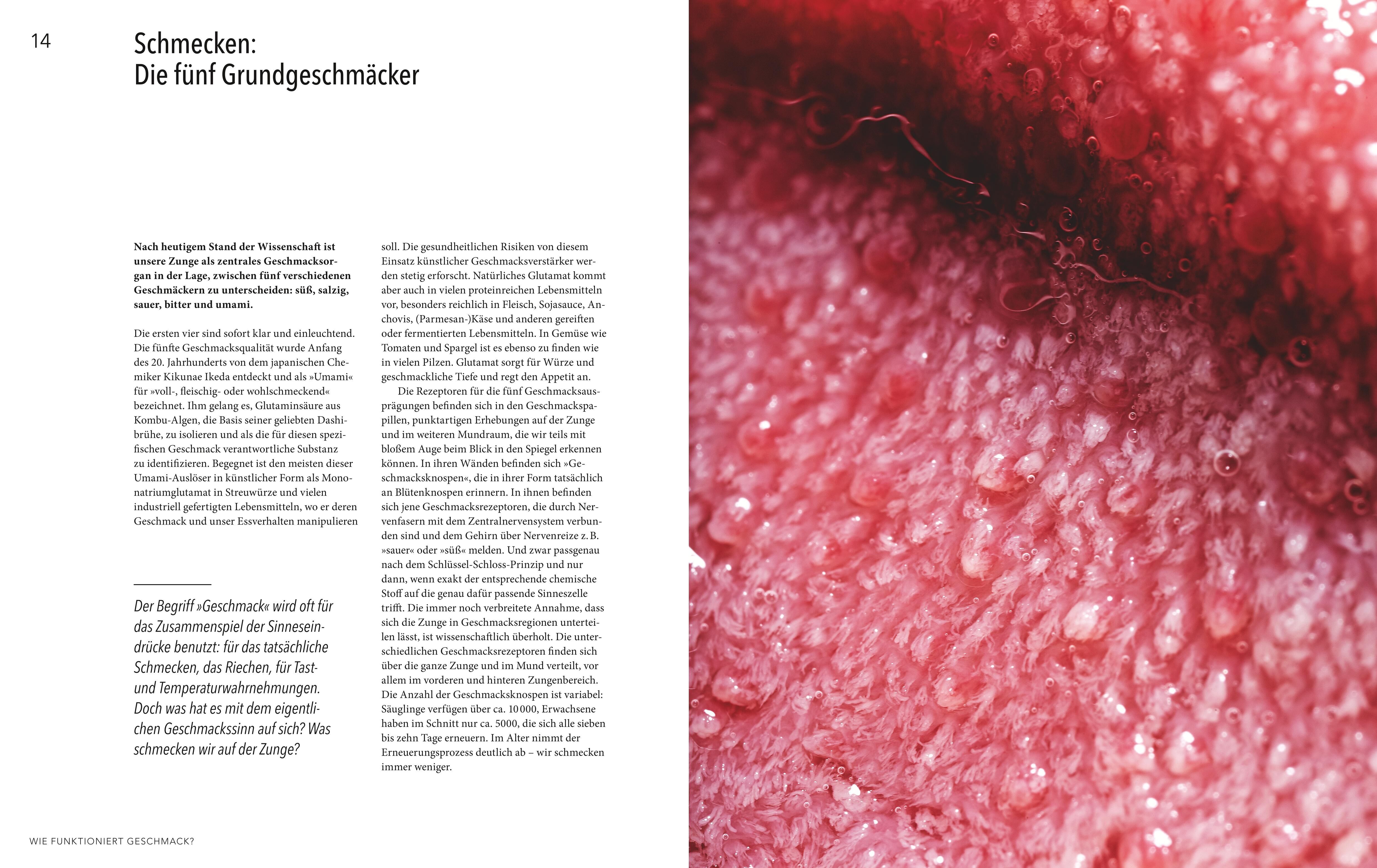 Wie entsteht Geschmack? Wie schmecken wir und mit welchen Sinnen erleben wir Geschmack und Essen? Diese Fragen beantwortet das Kochbuch von Antje de Vries!