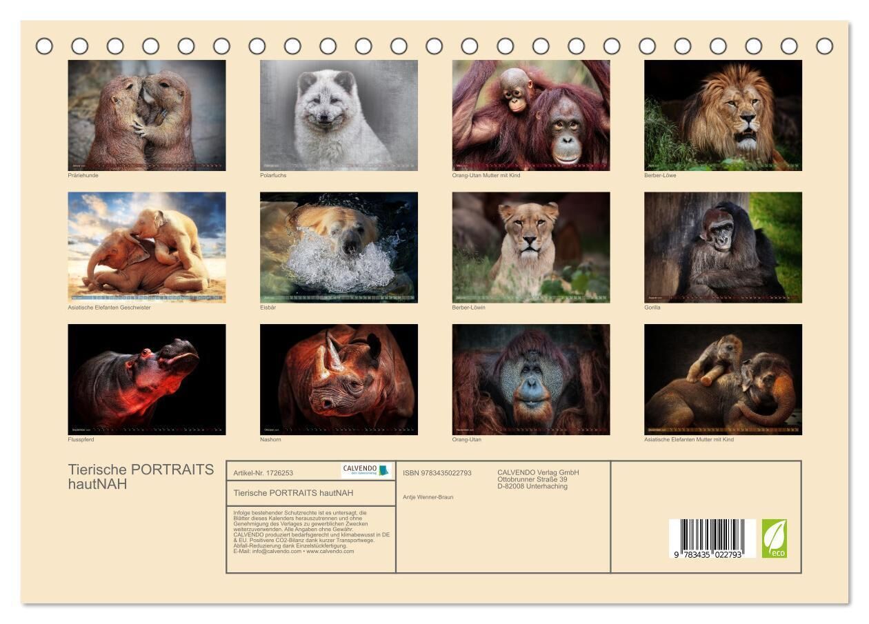 Portraitaufnahmen von Tieren üben einen ganz besonderen Reiz aus, weil sie eine Brücke schlagenzu unbekannten Individuen. Denn jedes Tier hat seinen ureigenen Charakter, und dem kommen wir hier ganz nah. Genießen Sie mit diesem Kalender ein ganzes Jahr lang di...