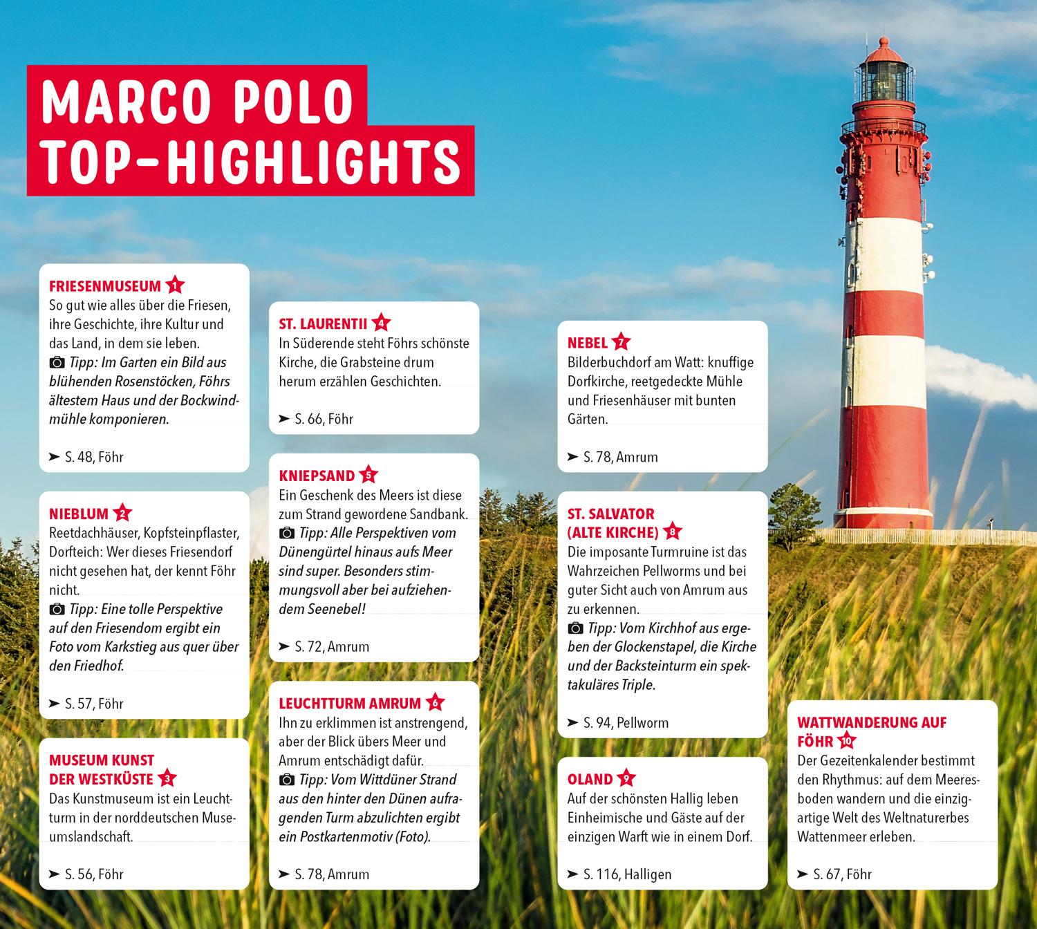 Entdecke mit dem MARCO POLO Reiseführer Föhr & Amrum, Pellworm, Nordstrand und die Halligen Keine der Nordfriesischen Inseln ist wie die andere. Auf Föhr findest du die schönsten Friesendörfer, Amrum lockt mit den malerischsten Dünen. Auf der Halbinsel No...
