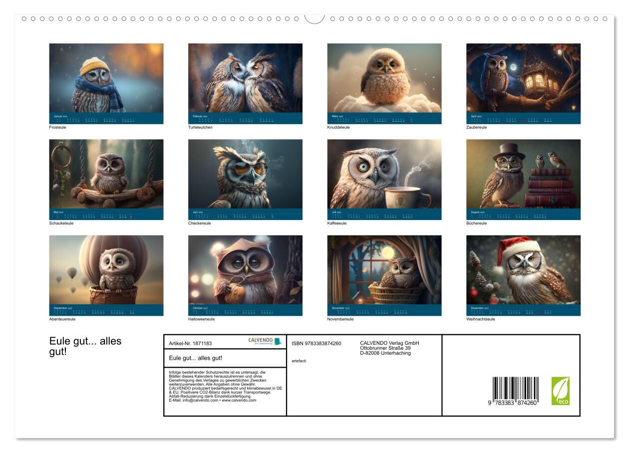 Eule gut... alles gut! (hochwertiger Premium Wandkalender 2025 DIN A2 quer), Kunstdruck in Hochglanz