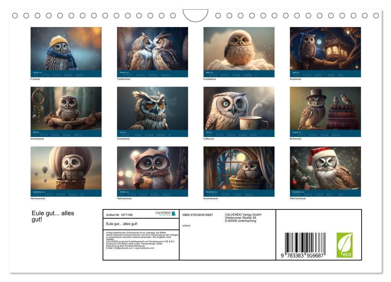Eule gut... alles gut! (Wandkalender 2025 DIN A4 quer), CALVENDO Monatskalender