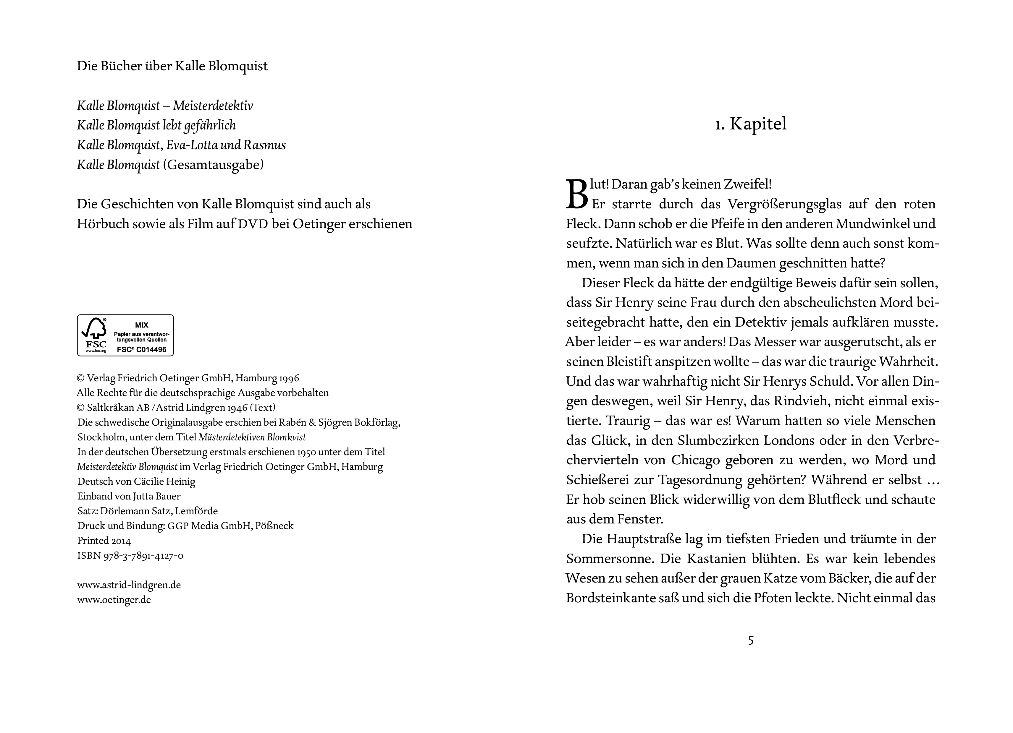 Kalle Blomquist ist ein mit allen Wassern gewaschener Detektiv. Doch ohne seine beiden Freunde Anders und Eva-Lotte wäre es auch für ihn schwer, den kniffligen Fall zu lösen. Es handelt sich um einen Juwelendiebstahl. Gefragt sind Mut und viel Köpfchen - kein ...