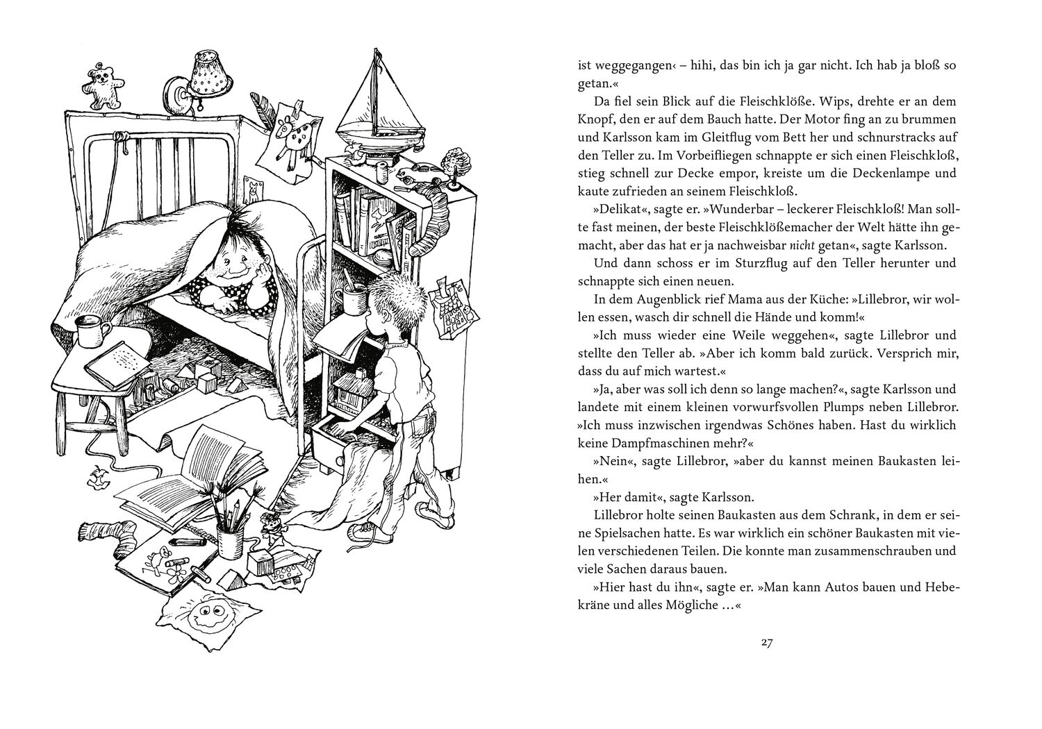 Alle drei Kinderbücher in einem Band Auf dem Dach, direkt neben dem Schornstein, wohnt ein kleiner selbstbewusster Herr: Karlsson vom Dach. Karlsson kann fliegen. Nicht mit dem Flugzeug oder mit dem Hubschrauber wie andere Leute, sondern mit einem Propeller di...