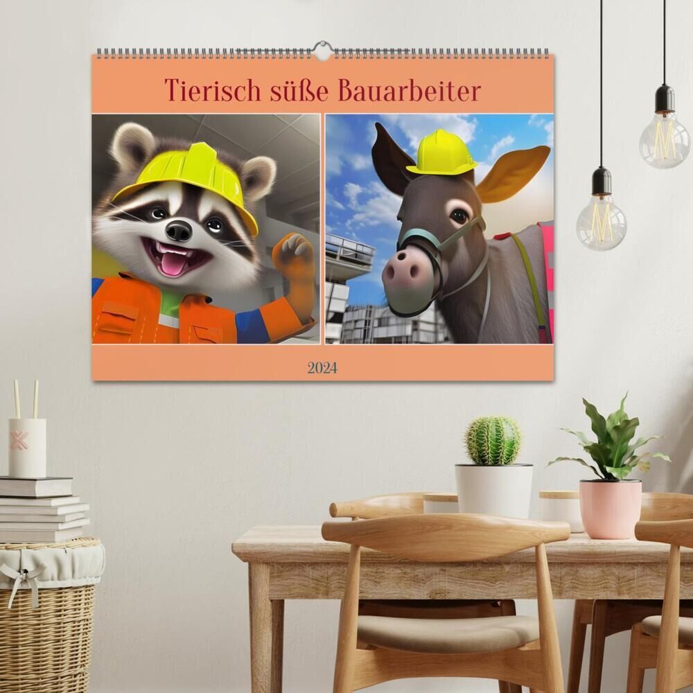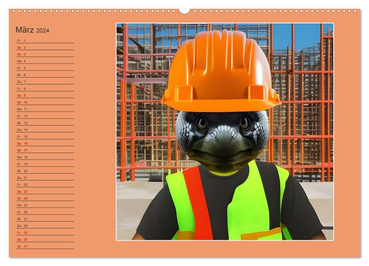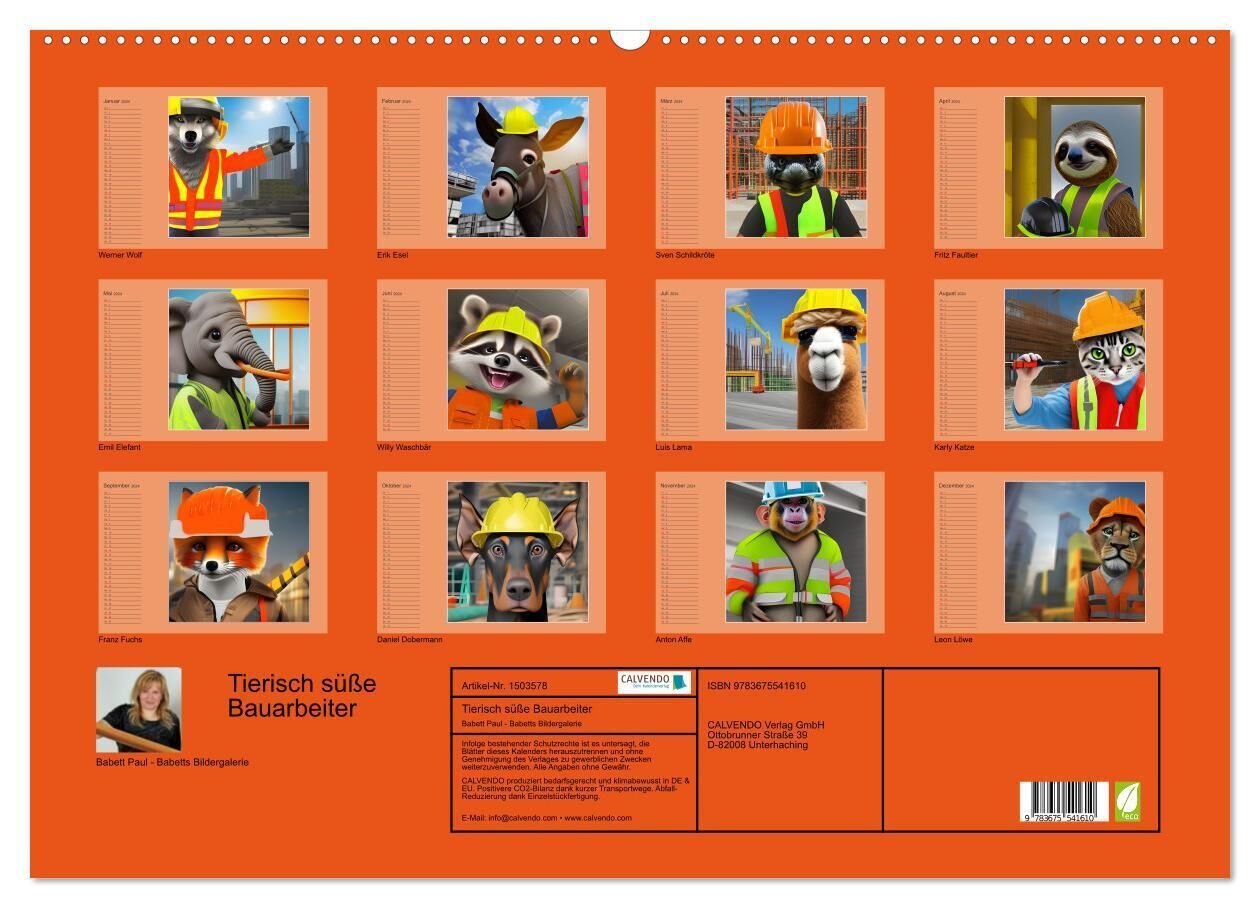 Tierisch süße Bauarbeiter (Wandkalender 2024 DIN A2 quer), CALVENDO Monatskalender
