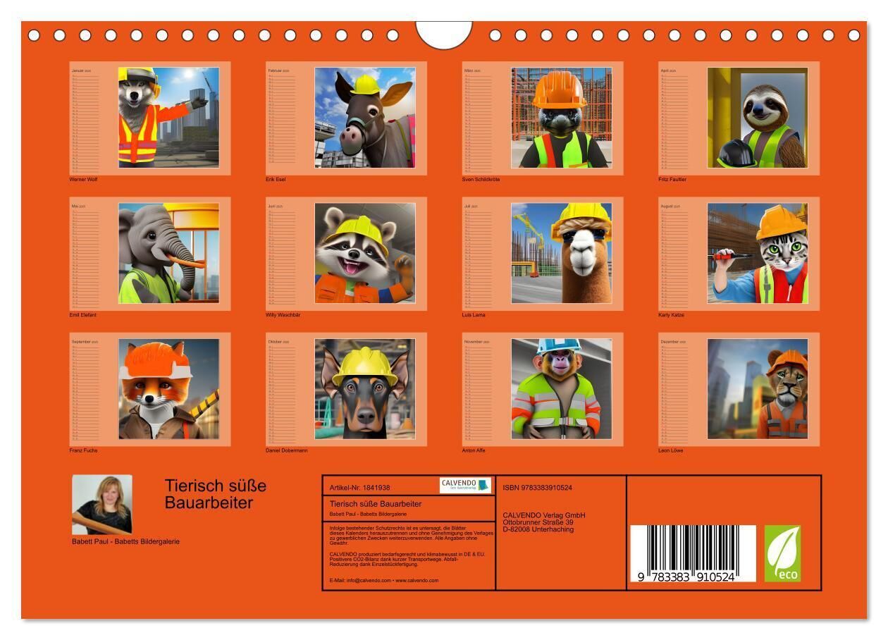 Tierisch süße Bauarbeiter (Wandkalender 2025 DIN A4 quer), CALVENDO Monatskalender