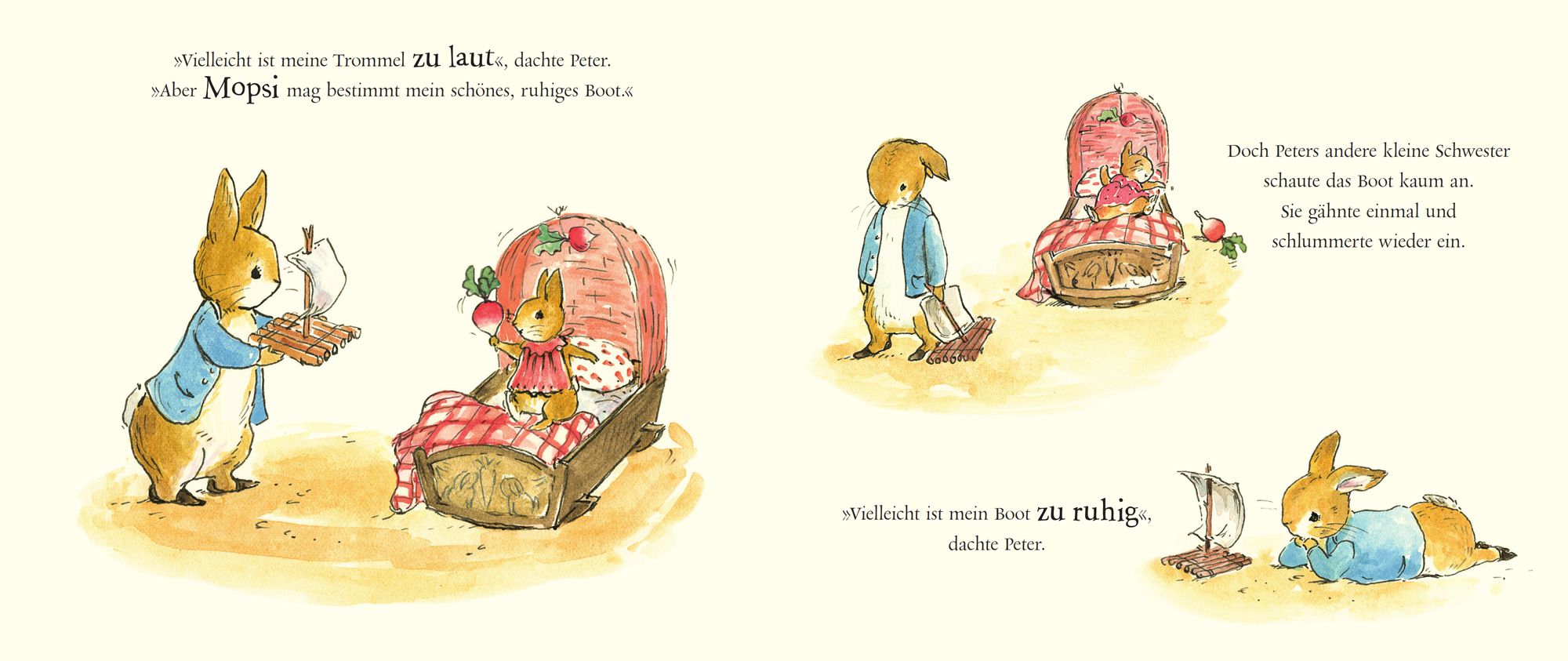 Großer Bruder sein ist gar nicht so einfach Hurra! Peter Hase hat gleich drei neue Geschwisterchen bekommen. Er freut sich schon sehr, denn sicher werden sie miteinander viel Spaß haben. Doch was Peter Hase auch mit den kleinen Babys spielen will, seine drei ...