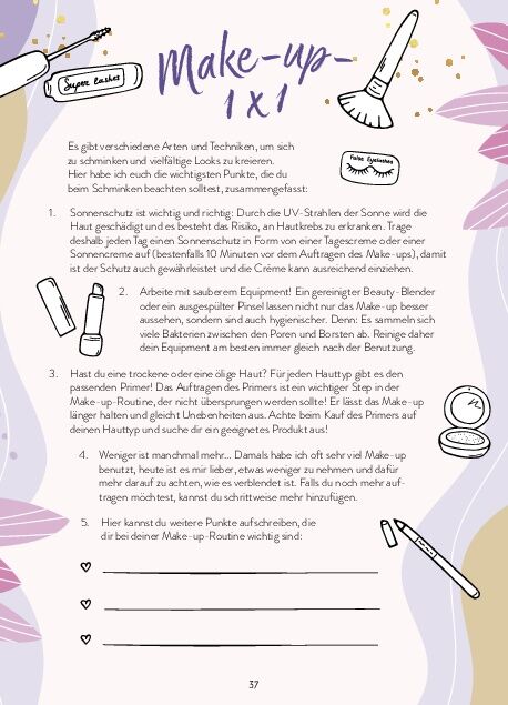 Dieses Buch ist das ideale Geschenk für junge Beauty- und Make up-Fans: Der perfekte Mix aus übersichtlichem Kalender, persönlichem Tagebuch und praktischem Planer begleitet dich Woche für Woche! Die 52 Wochenpläne bieten viel Platz für To-Do-Listen, persönlic...