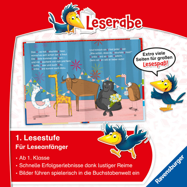Lesen lernen wie im Flug! "Ich bin ein Adler," ruft das A. "Ich fliege nach Amerika!" Es klettert einen Baum hinauf. Da nimmt das Unheil seinen Lauf. Das A hebt ab und plumpst dann weich - zum Glück - in einen kleinen Teich. Alle Buchstaben...