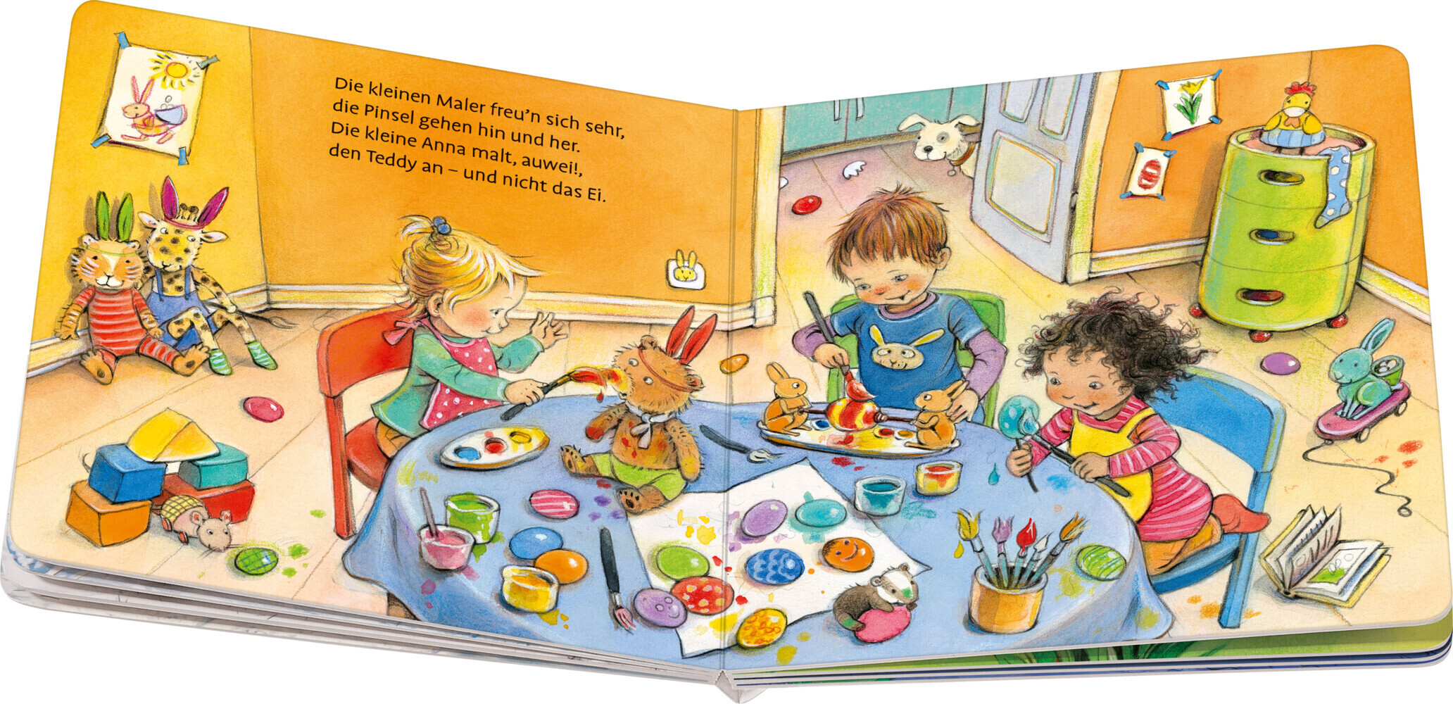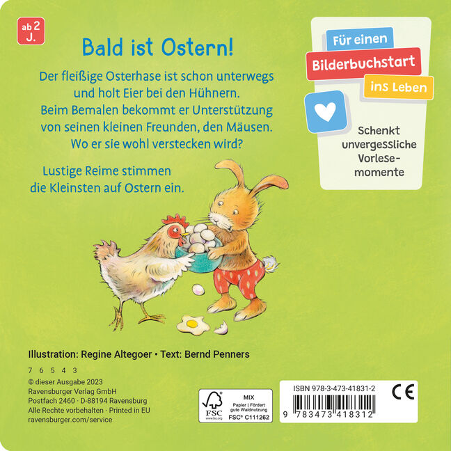 Bald ist Ostern und beim Osterhasen laufen die Vorbereitungen schon auf Hochtouren. Er holt Eier bei den Hühnern, bemalt sie mit seinen Farben und versteckt sie am frühen Ostermorgen in den Gärten. Auch bei den Kindern zuhause werden Ostereier bemalt und Oster...