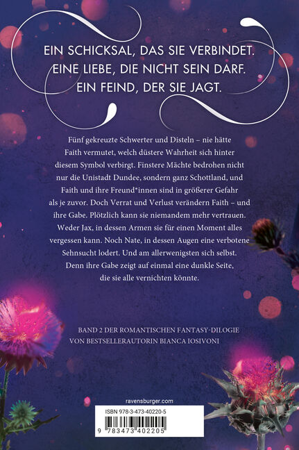 Band 2 der romantischen Bestseller-Fantasy Fünf gekreuzte Schwerter und Disteln - nie hätte Faith vermutet, welch düstere Wahrheit sich hinter diesem Symbol verbirgt. Finstere Mächte bedrohen ganz Schottland, und Faith und ihre Freundinnen sind in größerer Ge...