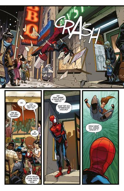 NACHWUCHS-NETZSCHWINGER von Christian Endres Im Jahre 2000 hoben Autor Brian Michael Bendis und andere Kreative bei Marvel das Ultimative Universum aus der Taufe. Mithilfe dieser Parallelwelt als unverbrauchtem Setting voller Möglichkeiten interpretierten sie die größten Marvel-Ikonen auf frische, aufregende Art und Weise neu. Der junge Peter Parker wurde im alternativen Ultimativen Universum zwar immer noch durch den Biss einer Spinne zu Spider-Man, doch war diese Spinne nun genetisch verändert und kam aus den Hightech-Labors des sinisteren Norman Osborn. Außerdem überlebte Peters Freundin Gwen Stacy im Ultimativen Universum, wo sie mit Pete bei Tante May wohnte. Die Avengers der Parallelwelt agierten derweil anfangs als Ultimates und wurden von SHIELD-Oberspion Nick Fury zusammengehalten, während Peter mit Spider-Woman Jessica Drew sogar einen weiblichen Klon hatte. Schließlich inszenierte Bestsellerautor Bendis, der zwischen 2000 und 2018 mehr als 200 Kapitel der Saga des ultimativen Spidey realisiert hat, 2011 das Ableben des ultimativen Peter Parker, der nach einer brutalen, epischen Schlacht mit dem Grünen Kobold Norman Osborn den Heldentod starb. Allerdings war das nicht automatisch das Ende des ultimativen Spider-Man! Denn Bendis und Zeichnerin Sara Pichelli führten postwendend Miles Morales als neuen Nachwuchs-Netzschwinger ein, was ein gigantisches Presseecho hervorrief. Inzwischen haben Miles, seine Familie und seine Freunde das Ultimative Universum hinter sich gelassen. In der Marvel-Hauptrealität stieß der wandkrabbelnde Fanliebling zuerst zu den Avengers, um sich dann den Champions anzuschließen. In diesem ultimativen Sammelband für alte und neue Spidey-Fans präsentieren wir nun noch einmal sein Debüt und seine ersten packenden Abenteuer als neuer Spider-Man des Ultimativen Universums. Viel Spaß!