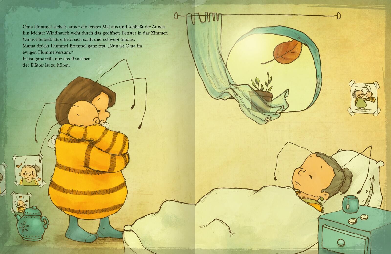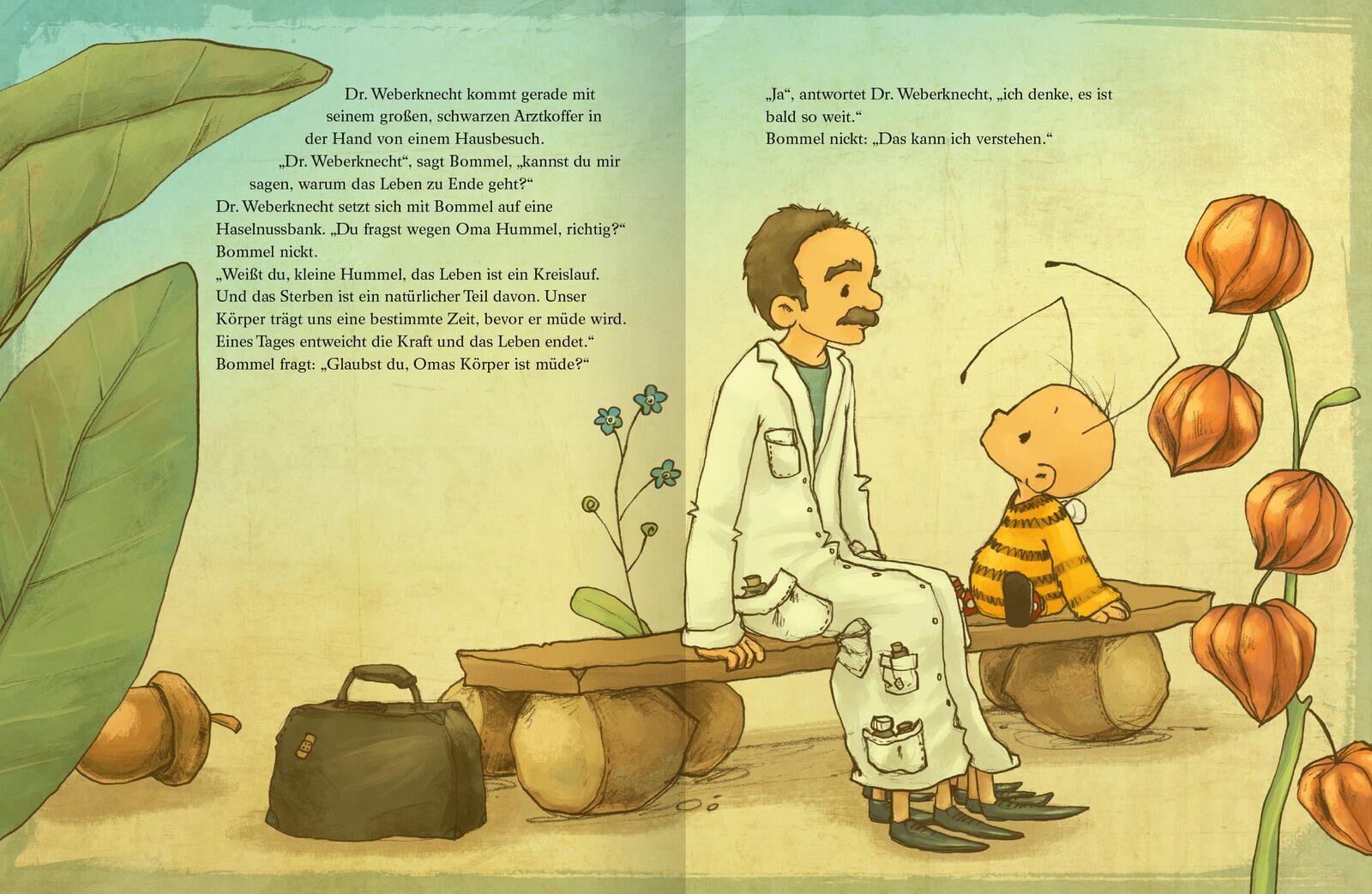 Oma Hummels Wangen sind heute nicht so rosig wie sonst und ihre Stimme ist auch ganz dünn. Bommel geht auf Zehenspitzen zu Omas Bett und flüstert: Was hast du denn? Mir geht langsam die Hummelkraft aus, antwortet Oma leise.