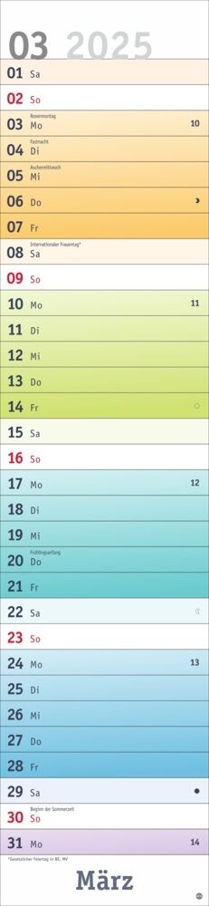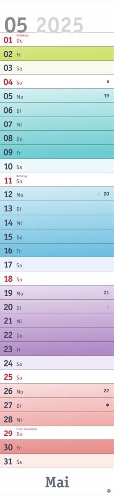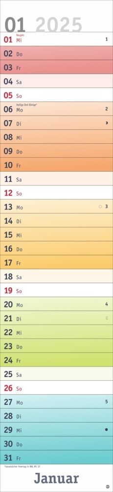 Alle Termine auf einen Blick: farbenfroher Wandkalender 2025 zum Eintragen- Fröhliches Design trifft straffe Orga: Der Monatsplaner 2025 mit dem gewissen Etwas - Mit Tagesschieber und allen Feiertagen: Langplaner mit Überblick im Format 16 x 69,5 cm- Terminp...