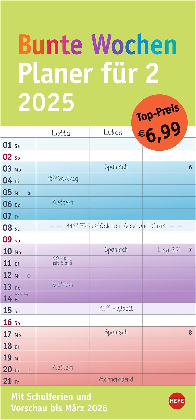 Ein Organisations-Allrounder für zwei: Der Bunte Wochen-Partnerplaner 2025 - Bunt wie das Leben als verliebtes Pärchen: Jede Woche eine neue Farbe, die für den besseren Überblick sorgt- Klassischer Planer für alle Lebenslagen: Wandkalender für zwei mit 3 Spa...