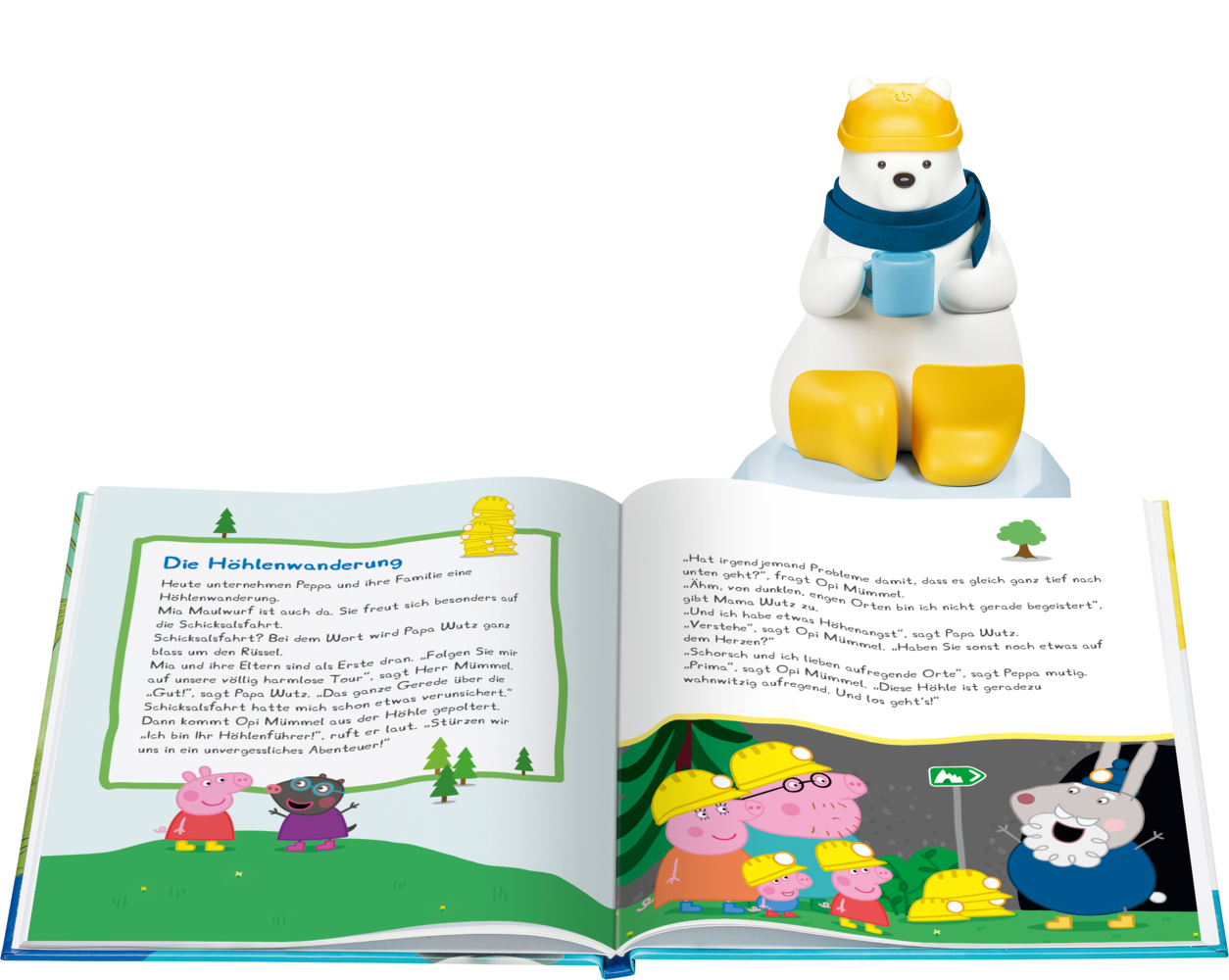 Erlebe mit SAMi ein Lese-Abenteuer! Drei lustige Geschichten nehmen dich mit in Peppas Welt: Peppas Teddy ist verschwunden. Wo kann er nur sein? Familie Wutz macht einen Ausflug in eine Tropfsteinhöhle. Dort fahren sie mit einem Boot und rutschen eine Seilbahn...