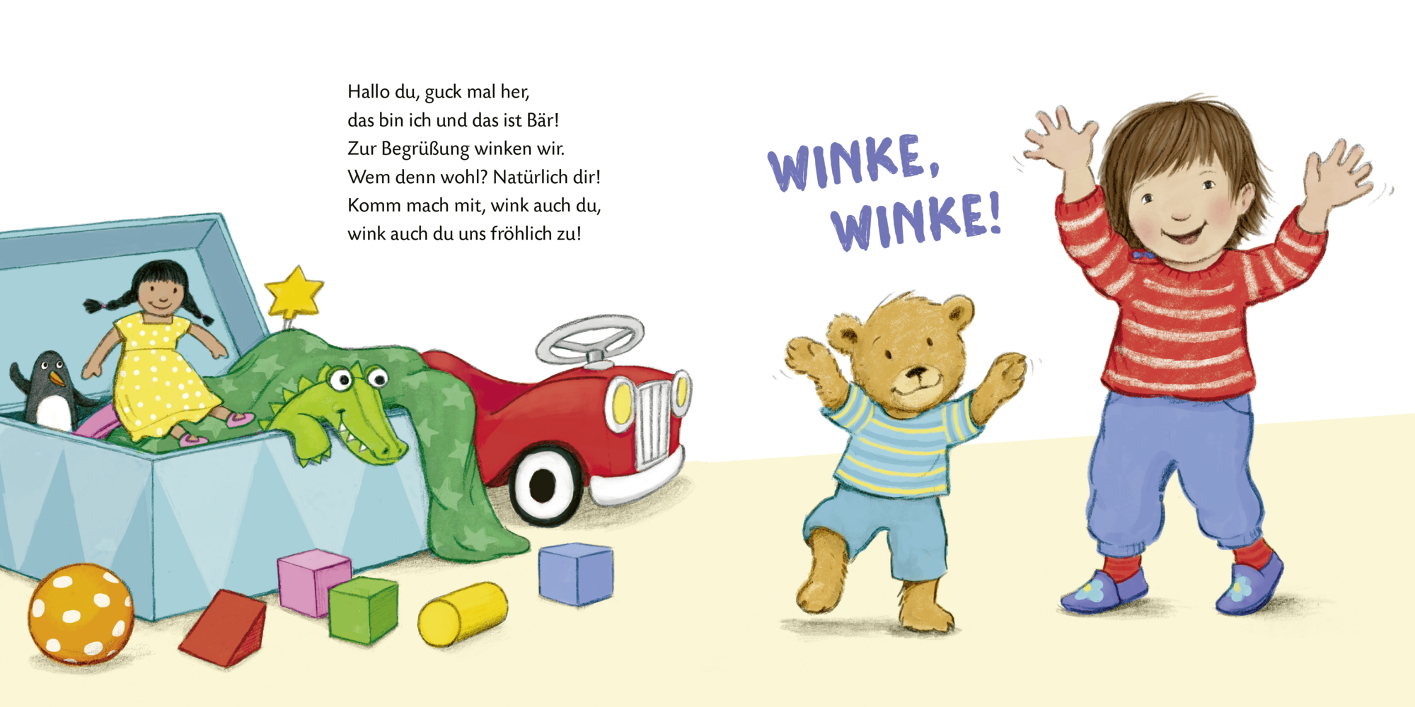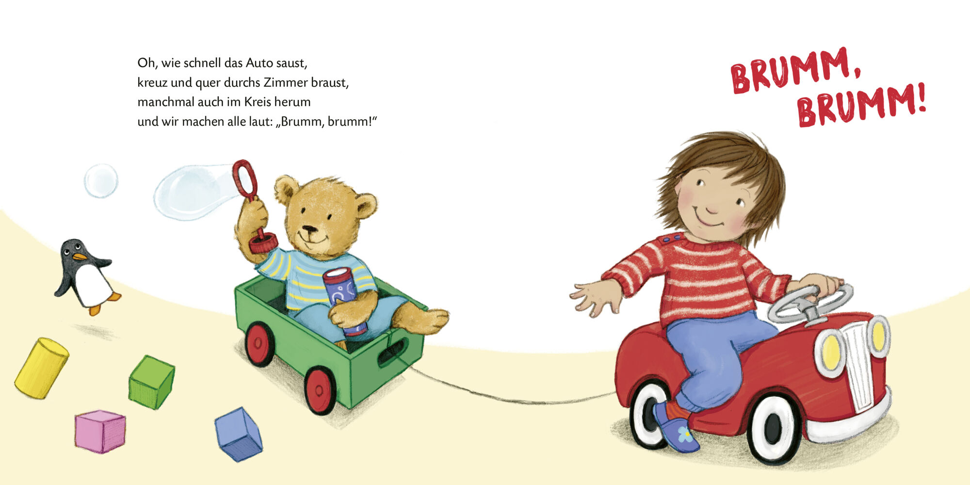 Spielbuch mit tollen Mitmachreimen! In diesem Buch zum Mitmachen für Kinder ab 18 Monaten werden Seifenblasen über die Seite gepustet, kommt ein Spielzeugauto mit lautem Brummbrumm um die Ecke gedüst und Kind und Bär spielen Verstecken. So kommt Bewegung in j...