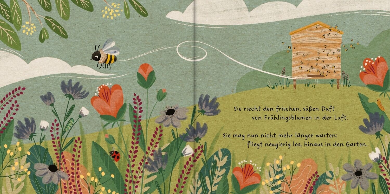 Ein liebevolles Pappbilderbuch Wer summt denn da im Garten? Im schönsten Sonnenschein fliegt die kleine Biene schon im Frühling ganz emsig von Blume zu Blume. Sie sammelt den leckeren Nektar, aus dem sie mit ihren Schwestern den süßen Honig macht. Selbst im H...