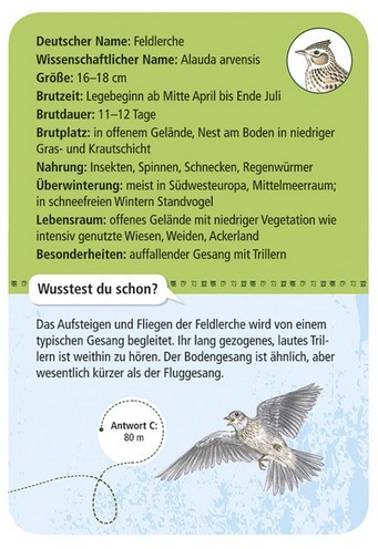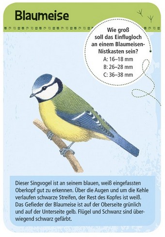 Mit den Karten in dieser Box lassen sich 50 Singvögel, Eulen und Greifvögel kinderleicht bestimmen: Unterhaltsame Quizfragen, anschauliche Illustrationen, detaillierte Steckbriefe und jede Menge Wissenswertes. Der ideale Begleiter für alle Naturfreunde! Klappe...