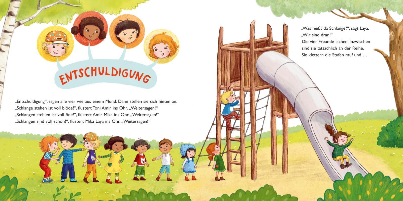 Liebevolle Vorlesegeschichte für Kita-Kinder über einen achtsamen und respektvollen Umgang miteinander. Soziale Kompetenzen für Kita-Kinder ab 3 Jahren - liebevoll und humorvoll erzählte Vorlesegeschichte Laya, Mika, Toni und Amir gehen zusammen in den Kinder...