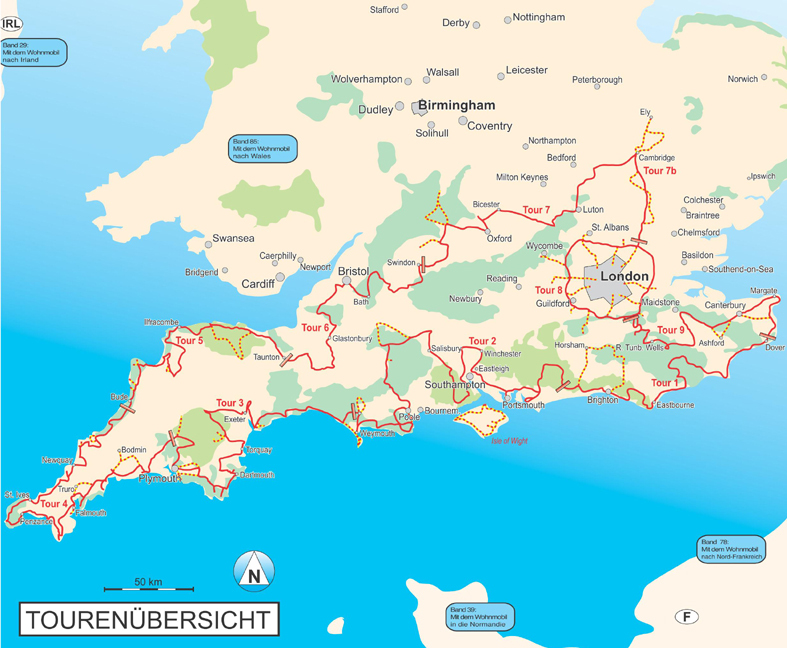Tourenkarten Auf rund 4000 km in 9 Touren zu allen großen Attraktionen und weniger bekannten Orten reisen. Genaue Markierung freier Stell-, Bade-, Picknick-, Wander- und Campingplätze incl. Ausstattung. Einzeichnung von Museen, Burgen, Herrenhäusern, Kirchen u...