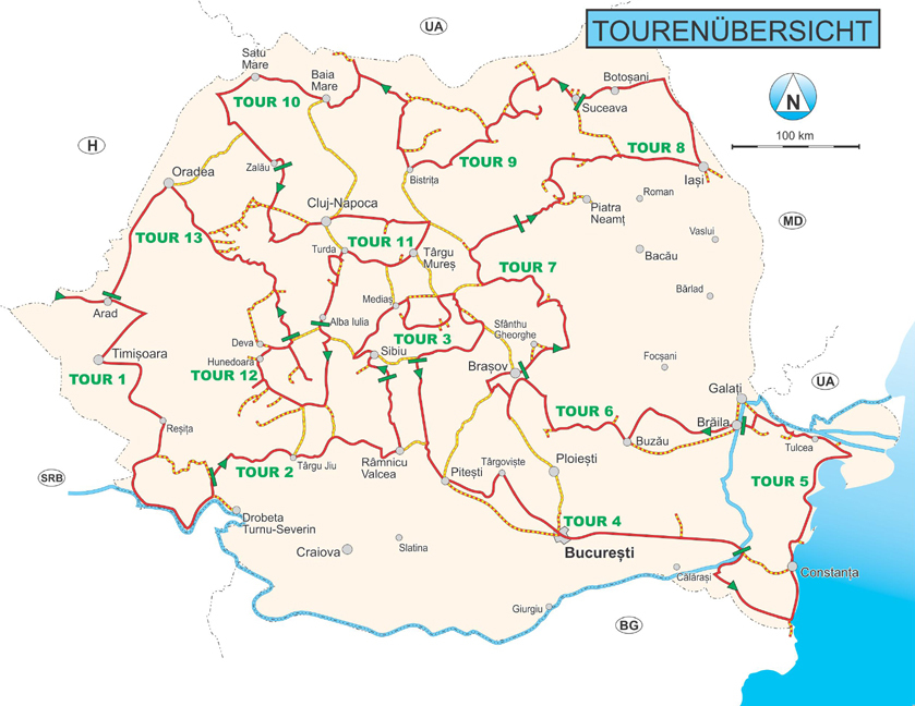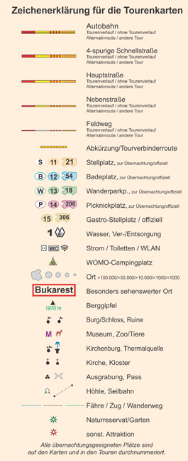 Tourenkarten Auf über 6500 km in 13 Touren zu allen großen Attraktionen und weniger bekannten Sehenswürdigkeiten reisen. Genaue Markierung aller Stell-, Bade-, Picknick-, Wander- und Campingplätze incl. Ausstattung. Einzeichnung von Museen, Schlössern, Klöster...