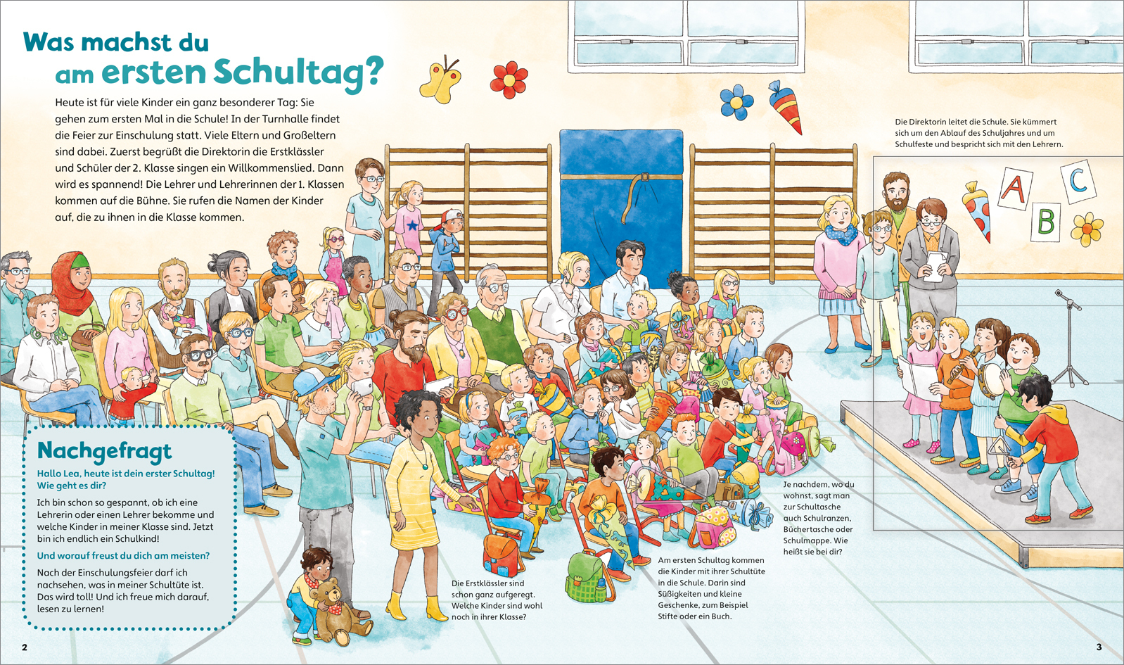 Wie verläuft der erste Schultag? Was brauchen Erstklässler für die Schule? Welche Fächer enthält der Stundenplan? Und wie sieht ein Klassenzimmer aus? Fragen, die zukünftigen Erstklässlern mit Sicherheit unter den Nägeln brennen, beantwortet dieser WAS IST WAS...