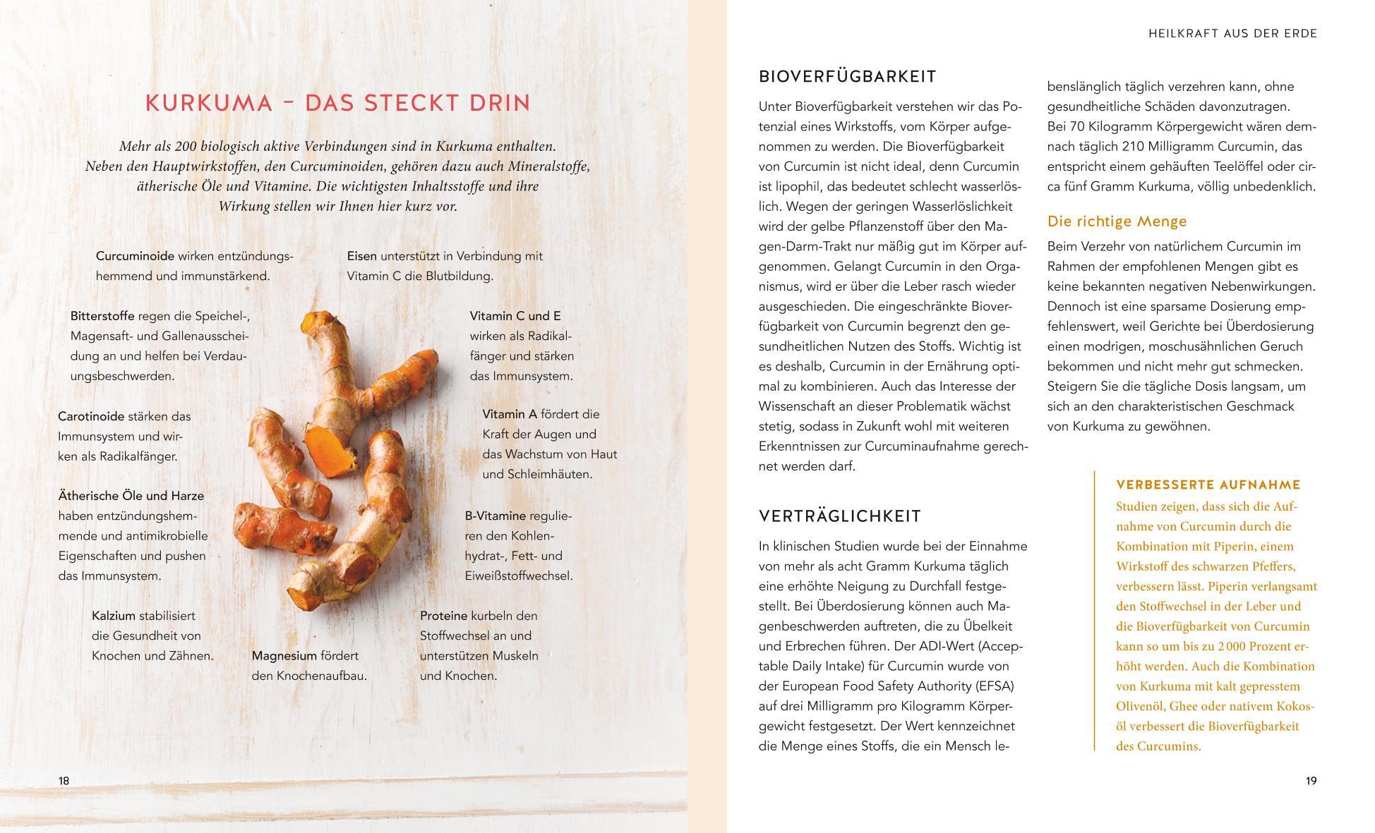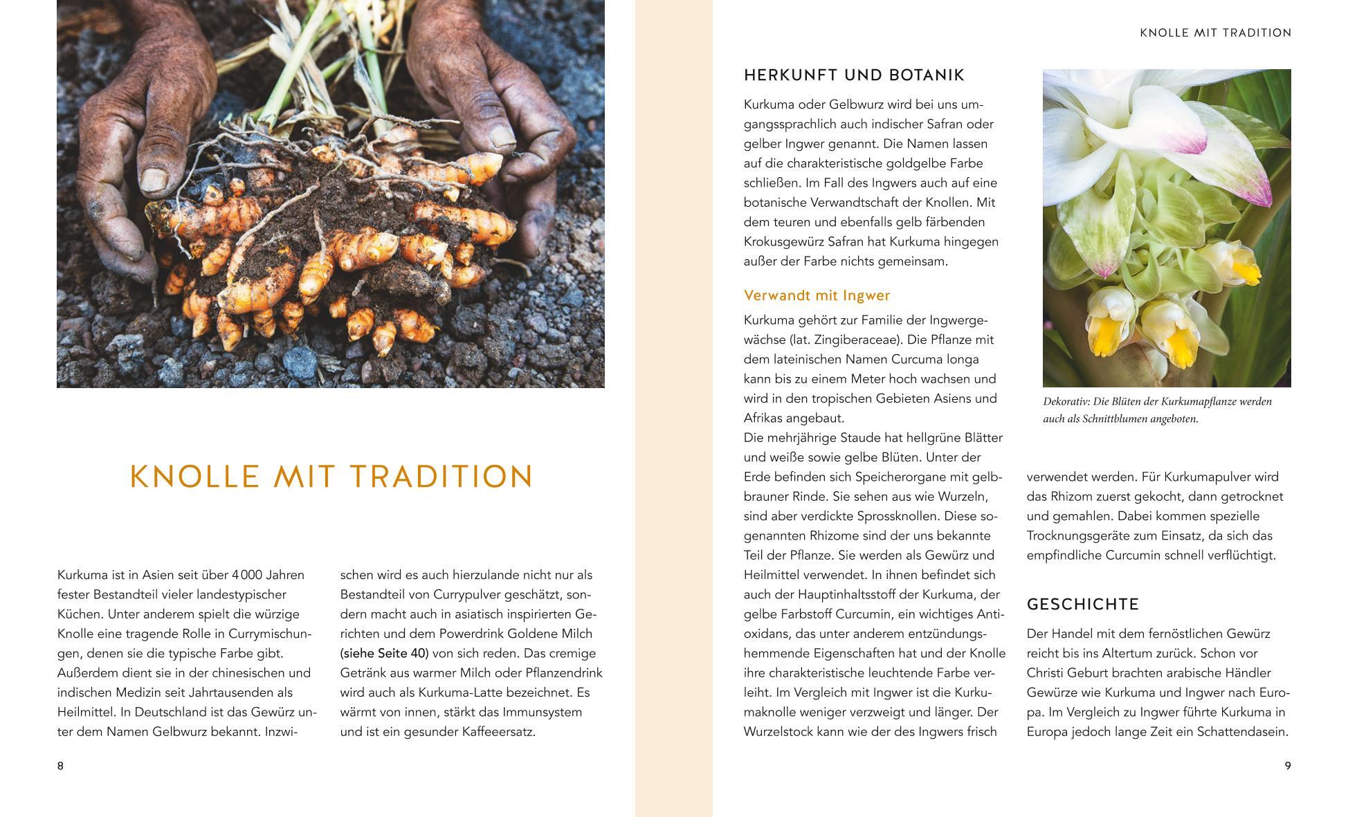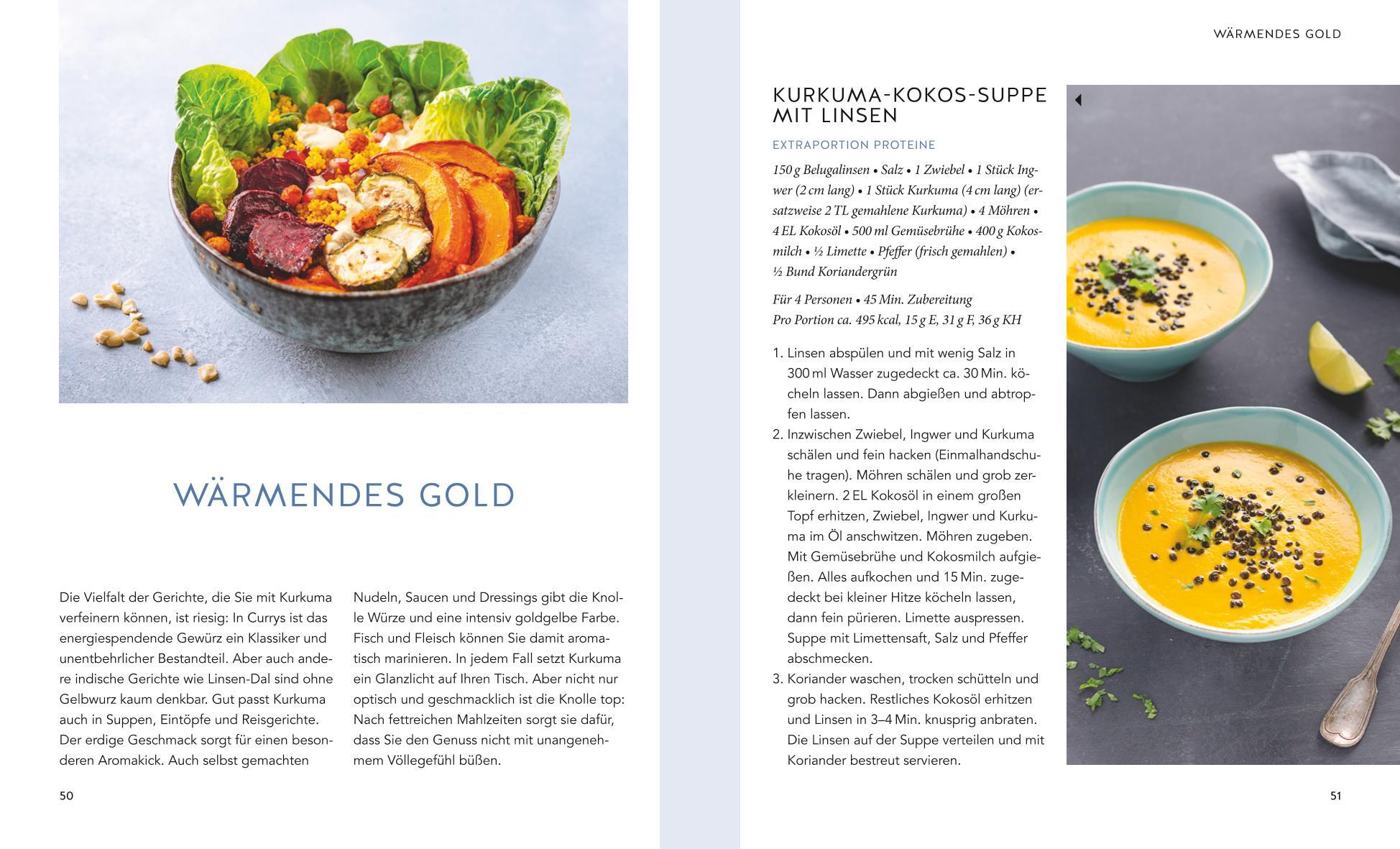 Größte Rezeptvielfalt: gesunder Genuss mit der goldgelben Powerwurzel Ein Löffelchen Kurkumapulver - und schon verwandeln sich Currys und Reis, ja selbst Milch und Eis in eine goldgelbe Herrlichkeit. Doch die trendige Powerwurzel kann mehr als nur Farbe und Ar...