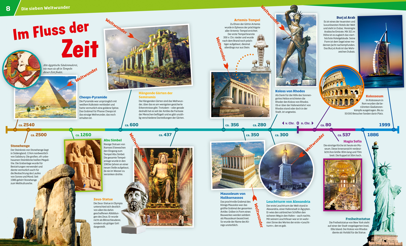 Bis heute üben die sieben Weltwunder eine wunderbare Faszination auf die Menschen aus. Alle Bauwerke waren architektonische Meisterwerke der Ingenieurkunst und des Handwerks und markierten Wendepunkte der Zivilisation. Das Ziel war immer, einen Bau für die Ewi...