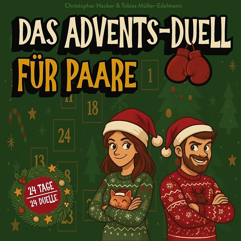 Das Advents-Duell für Paare - wer hat das Zeug zum Weihnachts-Champion?Vergesst herkömmliche Adventskalender - hier warten 24 Tage voller Spaß, Abwechslung und Wettkampf auf euch!Ob Pustefußball, Emoji-Quiz, Papierflieger-Weitwurf oder lustige Geschicklichkeit...