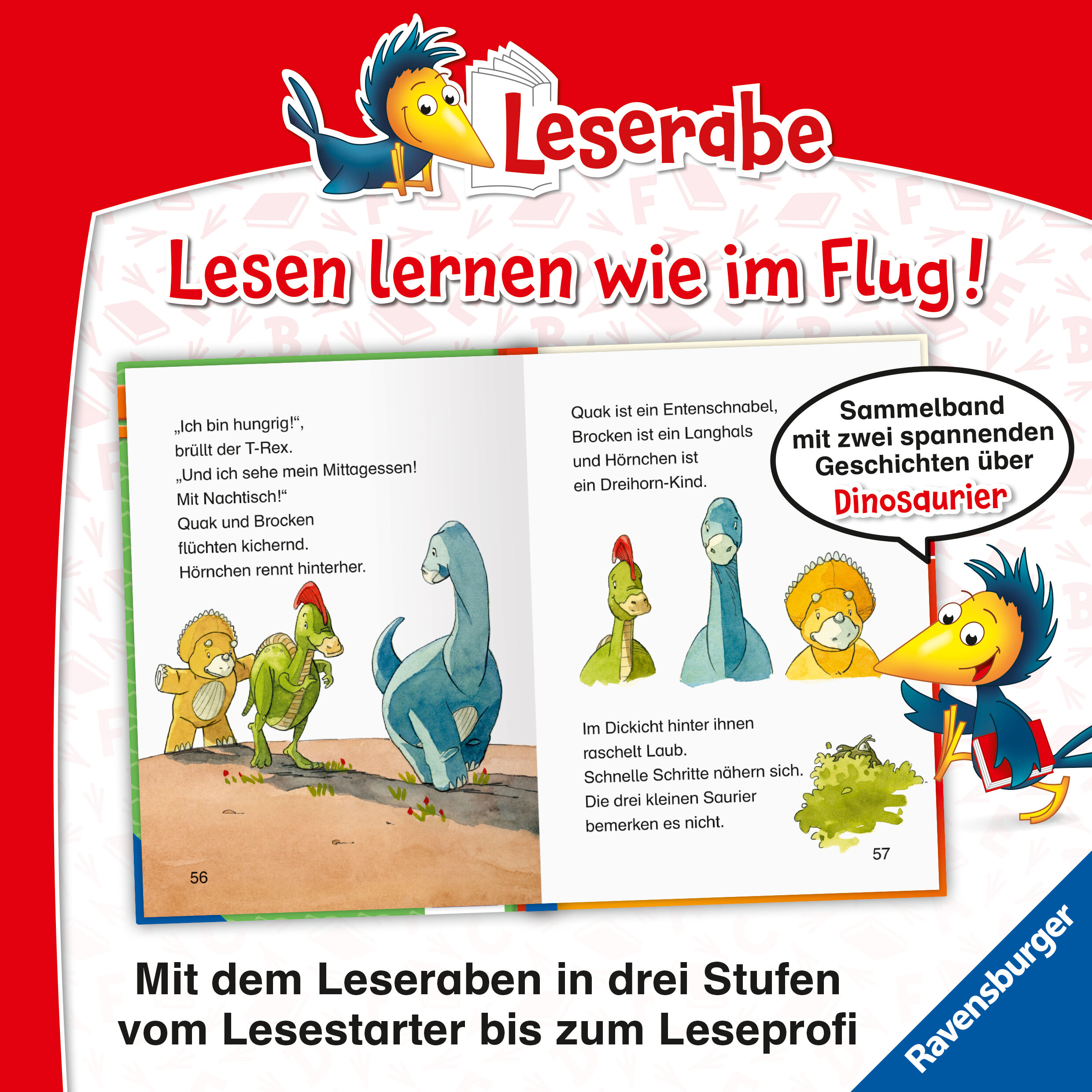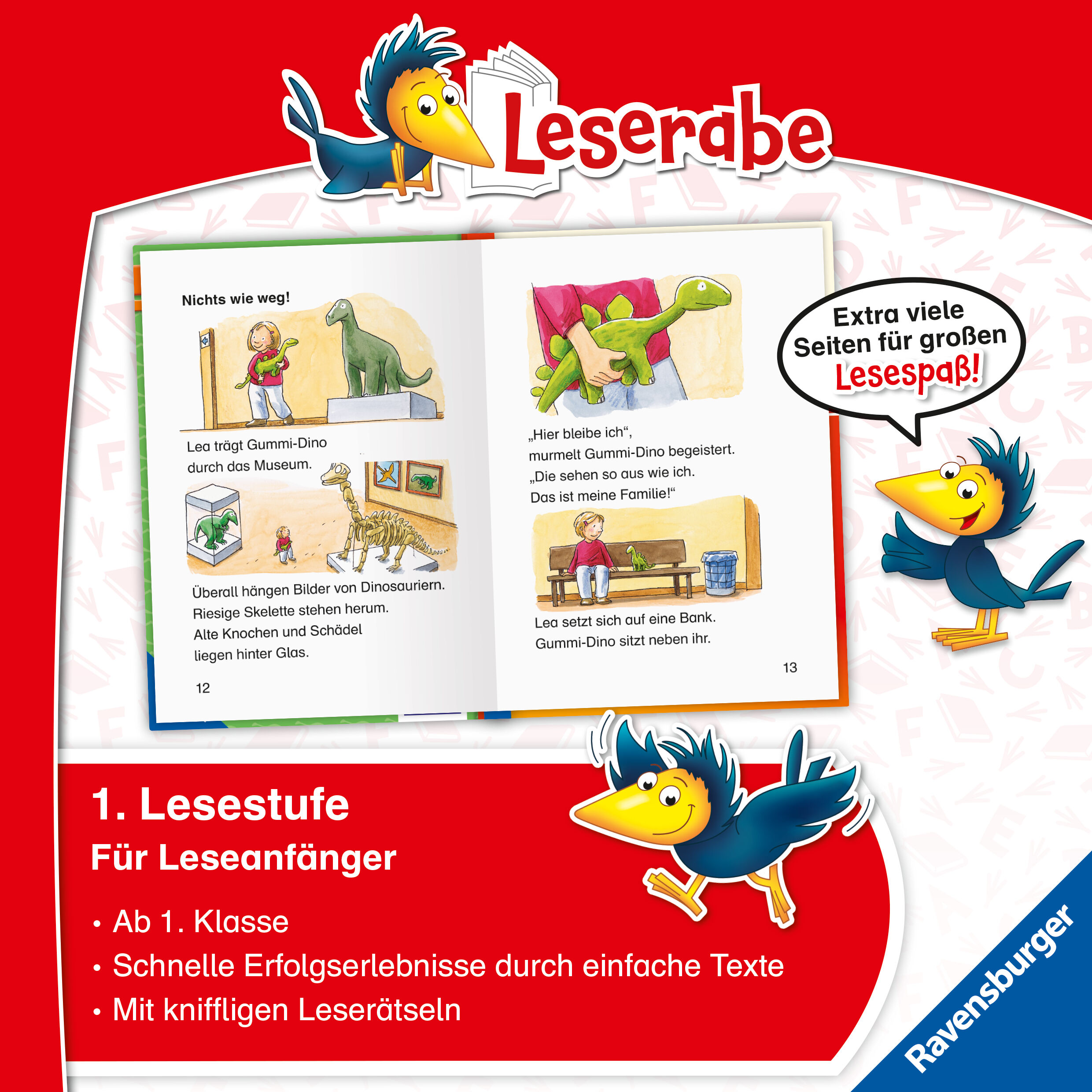 Ravensburger 36514 Leserabe - Sonderausgaben: Dinoabenteuer für Erstleser Erstles Ein spannendes Dino Buch zum lesen lernen: Abenteuerliche Dinosauriergeschichten und knifflige Leserätsel in einem Band. Tief im Urzeit-Wald lauert der gefährliche T-Rex, im Muse...