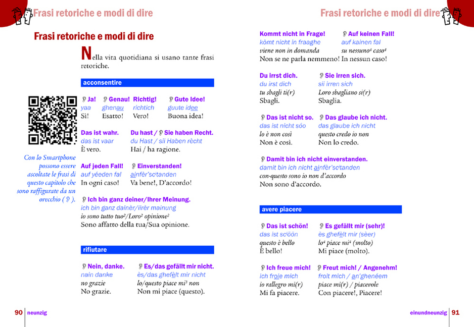 Particolarmente importante sono il linguaggio del corpo, gesti, segni e regole di comportamento nel paese turistico. Senza questi informazioni anche i conoscitori della lingua non vengono in contatto con la gente. Per questo in tutti i volumi della serie si pone attenzione a questo tipo di comunicazione.